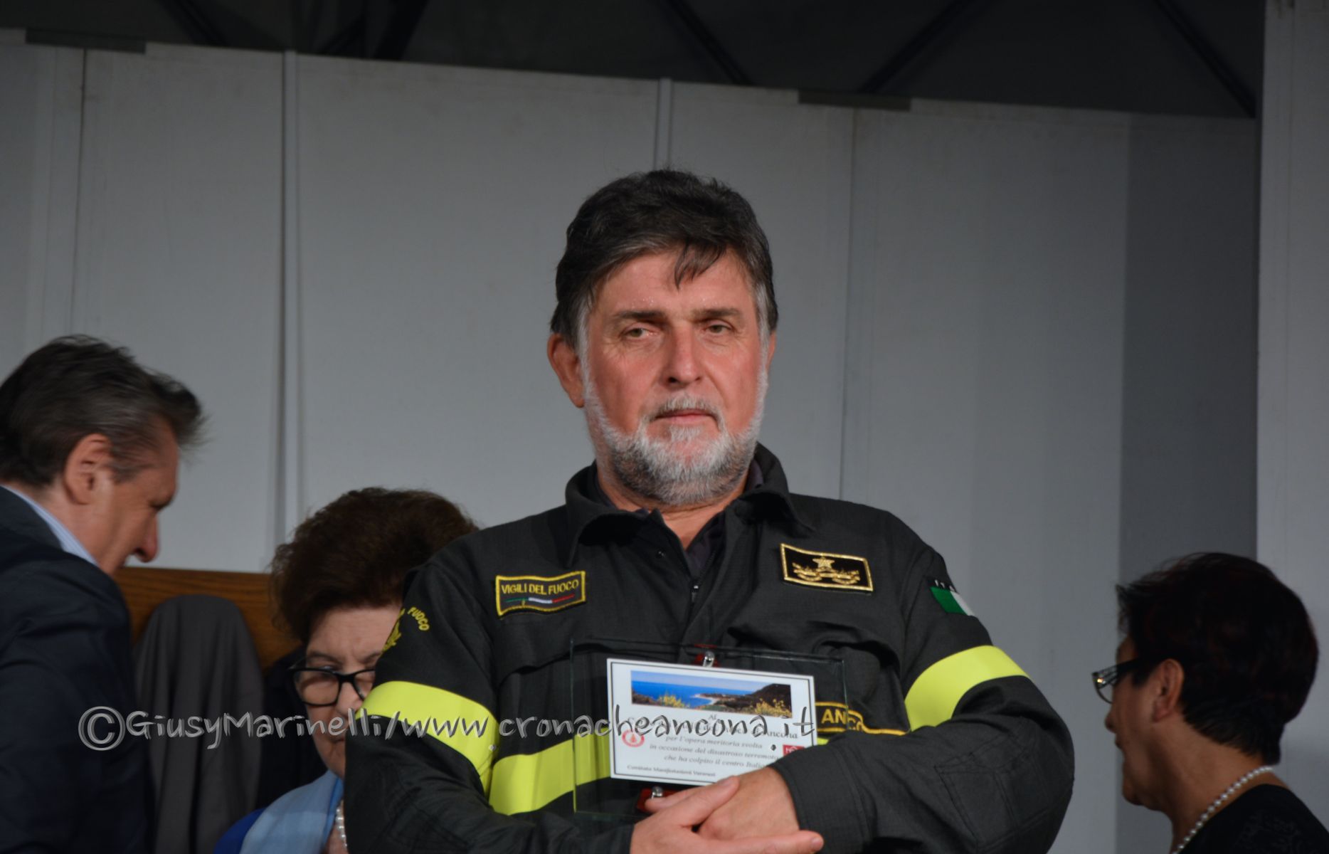 ANCONA – La 43esima edizione della kermesse del dialetto si è aperta con la consegna del premio marchigiano dell'anno al gruppo dei vigili del fuoco di Ancona intervenuti ad Arquata del Tronto. Il comandante Di Iorio: “Né angeli, né eroi, abbiamo il rammarico di non aver potuto salvare altre vite”