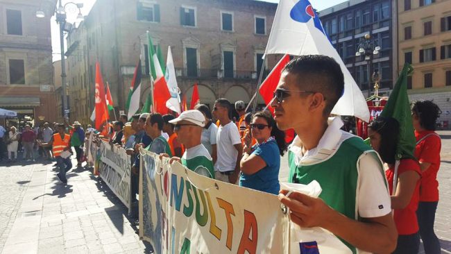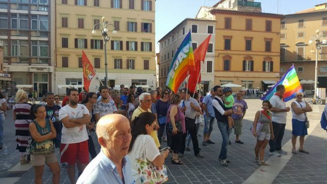 Ieri a Jesi la manifestazione indetta dalle comunità islamiche contro il terrorismo, per la pace, per raccontare il loro vissuto per condividere un futuro. Rifondazione comunista come altri gruppi (leggi l’articolo), c’era non solo per dimostrare solidarietà concreta, “non solo perché da anni ha aperto la propria sede ad esperienze come il doposcuola popolare – scrive in una nota stampa Prc- gestito dall’associazione intitolata a Daniela Cesarini, che è la testimonianza concreta di come si può condividere e imparare insieme, dove ragazzi del quartiere e bimbi stranieri si incontrano, ma soprattutto perché sappiamo che un appuntamento come questo, purtroppo sinora l’unico nelle Marche, può contribuire a pensare insieme progetti di integrazione, piattaforme per i diritti, movimenti e organizzazione per realizzarli”.