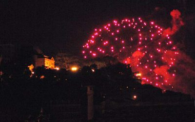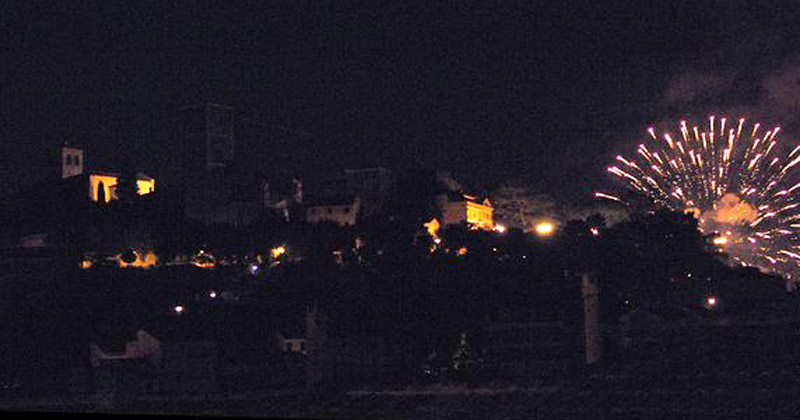 Il cielo di Osimo illuminato dai fuochi di artificio per la festa di San Giuseppe da Copertino (foto Bruno Severini)