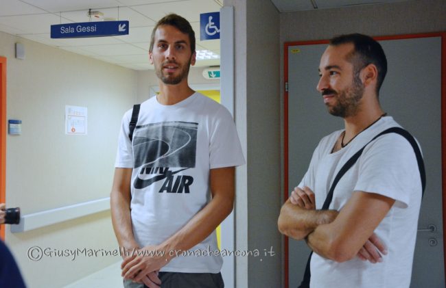 Sono arrivati all’ospedale di Torrette attorno alle 10.30 i primi tifosi di Valentino Rossi per cercare di stare vicino al campione di Tavullia, operato nella notte per ridurre la frattura scomposta rimediata alla gamba destra. «Non sappiamo neanche noi quale sia la speranza, se sia quella di vederlo o salutarlo» affermano Daniele Zingaretti ed Emanuele Ficosecco, due ragazzi falconaresi appollaiati a pochi metri dalle porte del reparto di Ortopedia, completamento off limits. «Eravamo andati a trovarlo anche a Scandicci, quando si fece male nel 2010 proprio nello stesso punto fratturato ieri. In quell’occasione era tornato a correre dopo 40 giorni. C’era stato un recupero record. Poche ora prima che si diffondesse la notizia dell’incidente in enduro avevamo comprato i biglietti per il gran premio di Misano. Ora, non sappiamo neanche più che senso avrà partecipare senza la presenza di Vale. Non sarà certo la stessa cosa. Che gli vorremmo dire se ne avessimo l’occasione? Vale rimani sempre il migliore, il più forte di tutti». Nei corridoi del reparto reso blindatissimo dalla presenza della vigilanza privata (fissa all’ospedale di Torrette), c’è anche una coppia di Castelfidardo. Ogni volta che le porto si aprono, per far passare medici e infermieri lungo l’area che divide la sala d’aspetto dalle camere dei pazienti, è un sussulto per il cuore dei due tifosissimi: «Appena abbiamo saputo che era a Torrette, siamo corsi immediatamente. Non ci muoviamo di qua. Magari avere un osso rotto pur di incontrare il Dottore». In mattinata anche il presidente del Coni Giovanni Malagò, oggi sui luoghi del sisma e poi a Pesaro per i mondiali di ginnastica ritmica, ha dichiarato l’intenzione di voler andare a salutare Valentino Rossi all’ospedale di Ancona.