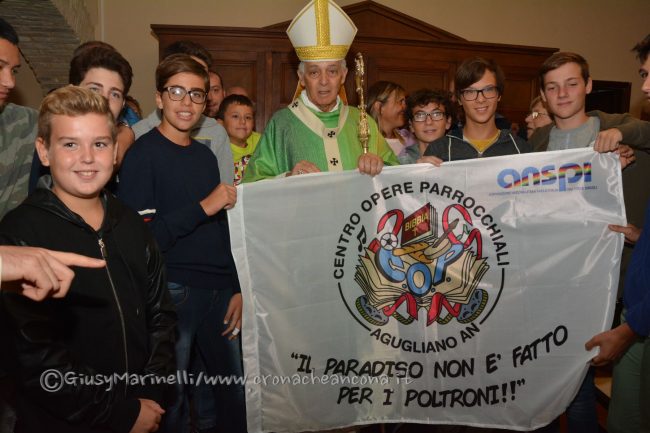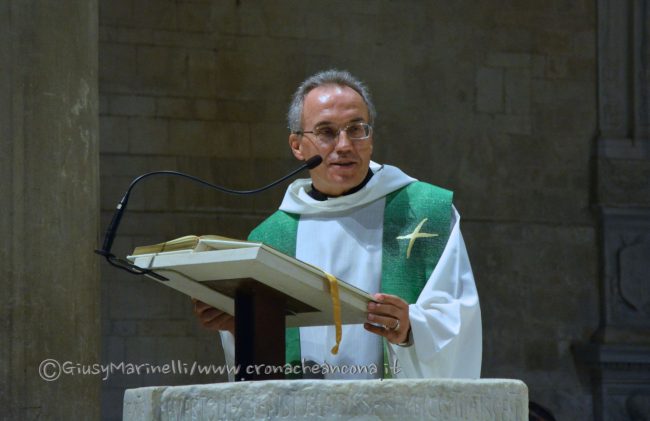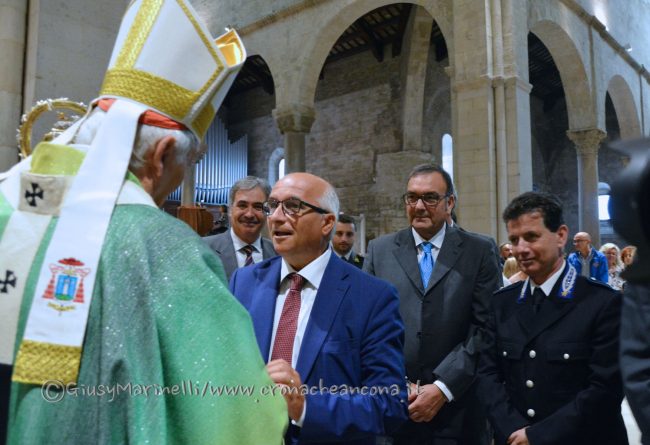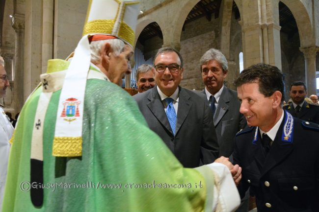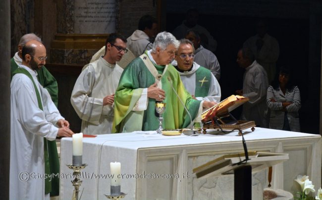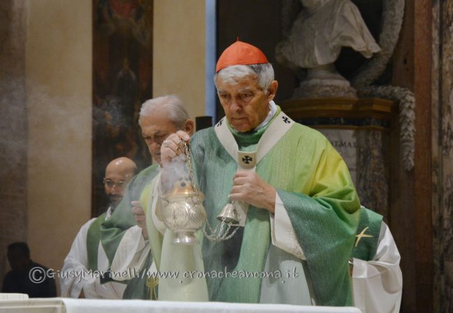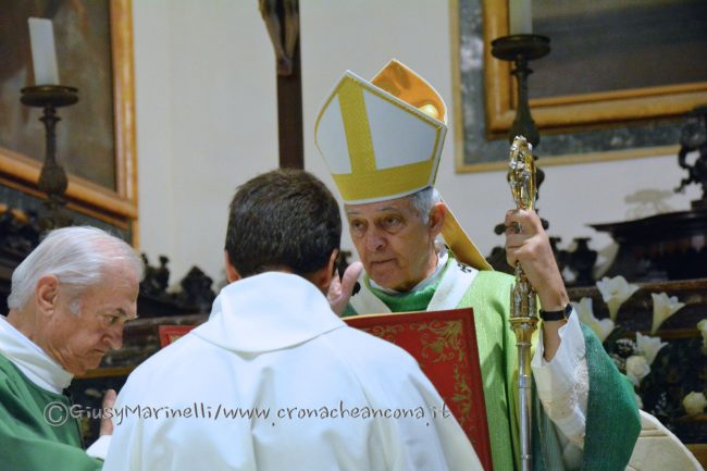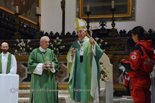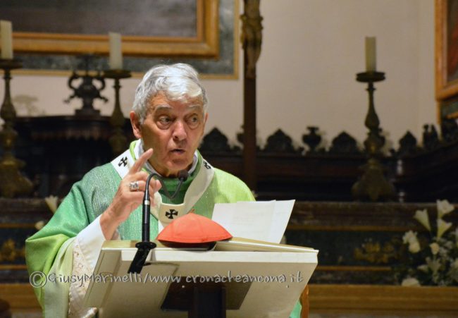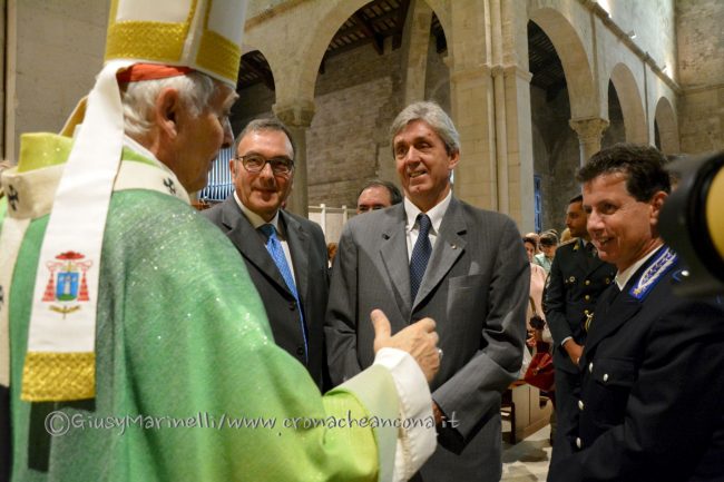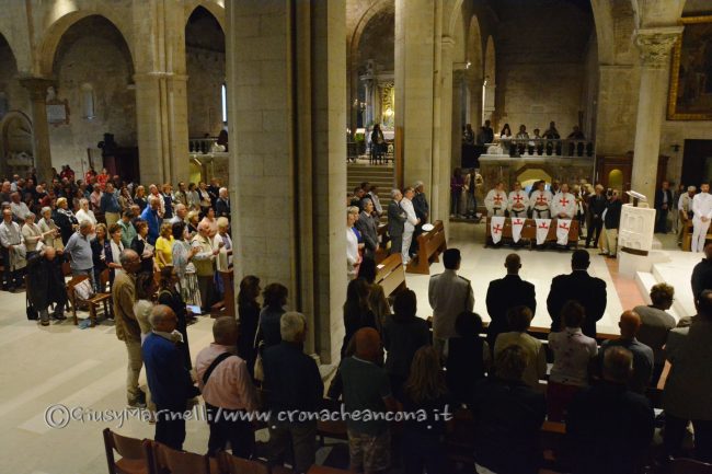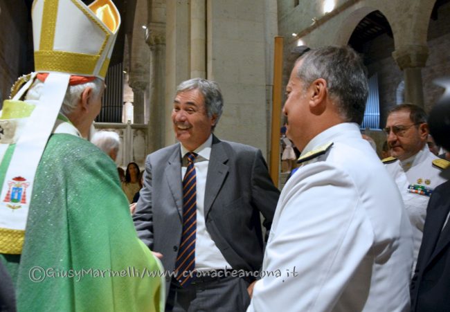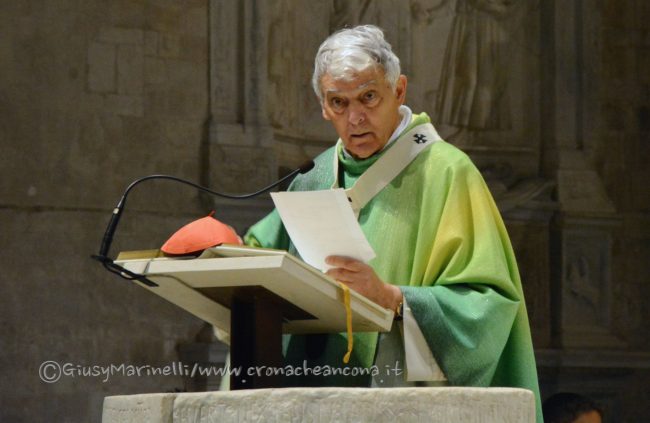 Uno strappo all’etichetta della celebrazione eucaristica, con l’applauso esitante dapprima, ma inarrestabile a conclusione dell’omelia che interrompe il consueto svolgersi della messa. È il saluto carico di affetto della città al suo arcivescovo, il cardinale Edoardo Menichelli, nell’occasione della Festa del Mare, l’ultima officiata da Menichelli, ridotta alla sola funzione mattutina al duomo, a causa del maltempo. Cattedrale gremita, le autorità sui primi banchi – il prefetto Antonio D’Acunto, il presidente dell’Autorità di sistema portuale, Rodolfo Giampieri, il vice sindaco Pierpaolo Sediari, la presidente della Privincia di Ancona, Liana Serrani, Fabio Sturani in rappresentanza della Regione, il comandante della capitaneria di porto, Francesco Saverio Ferrara, il deputato Piergiorgio Carrescia, il presidente dell’associazione Stella Maris, Carlo Mancini – e tanti fedeli, per una delle ricorrenze più sentite della città, ma soprattutto per ascoltare il congedo del cardinale da quella che è stata la sua casa per tredici anni. «Sono lieto di festeggiare questa Eucarestia in un giorno così significativo per Ancona, sposa di questo mare a cui tanto deve anche per la sua attività economica − l’incipit dell’omelia –. Ancona non deve mai dimenticare questo e avere gratitudine verso questo mare e a Dio per questo mare. Sono molto lieto di essere qui perché questa è l’ultima Festa del Mare che condivido con voi». È un monito per il futuro, il messaggio che Menichelli lascia ad Ancona dal pulpito, più che un amarcord dei tempi trascorsi, nello stile che ha contraddistinto il suo impegno in città. «Ci sarà modo di dire» afferma. Eppure un ricordo lo affida alla comunità, prima della benedizione al termine della messa. «Perché Ancona se lo ricordi ancora. Perché non dimentichi». Immagine sintensi dell’invito alla gratitudine della città verso il mare e verso Dio. «Era il 2010/2011 e stavamo organizzando il Congresso eucaristico. A Fincantieri non c’era lavoro. Molti dei nostri fratelli, legittimamente ogni giorno manifestavano − racconta −. Volli che la conclusione del Congresso si svolgesse all’interno del cantiere. Gli operai mi chiesero di poter affiggere sulle mura del duomo la scritta “Il lavoro è dignità” e acconsentii. Alcuni lavoratori riuscirono a salutare papa Benedetto XVI, altri pranzarono con lui ed anche i più duri piansero. Cara Ancona, da quel giorno Fincantieri lavora e da quel che so ha lavoro per molto altro tempo ancora. Che sia solo una coincidenza? Io non credo».