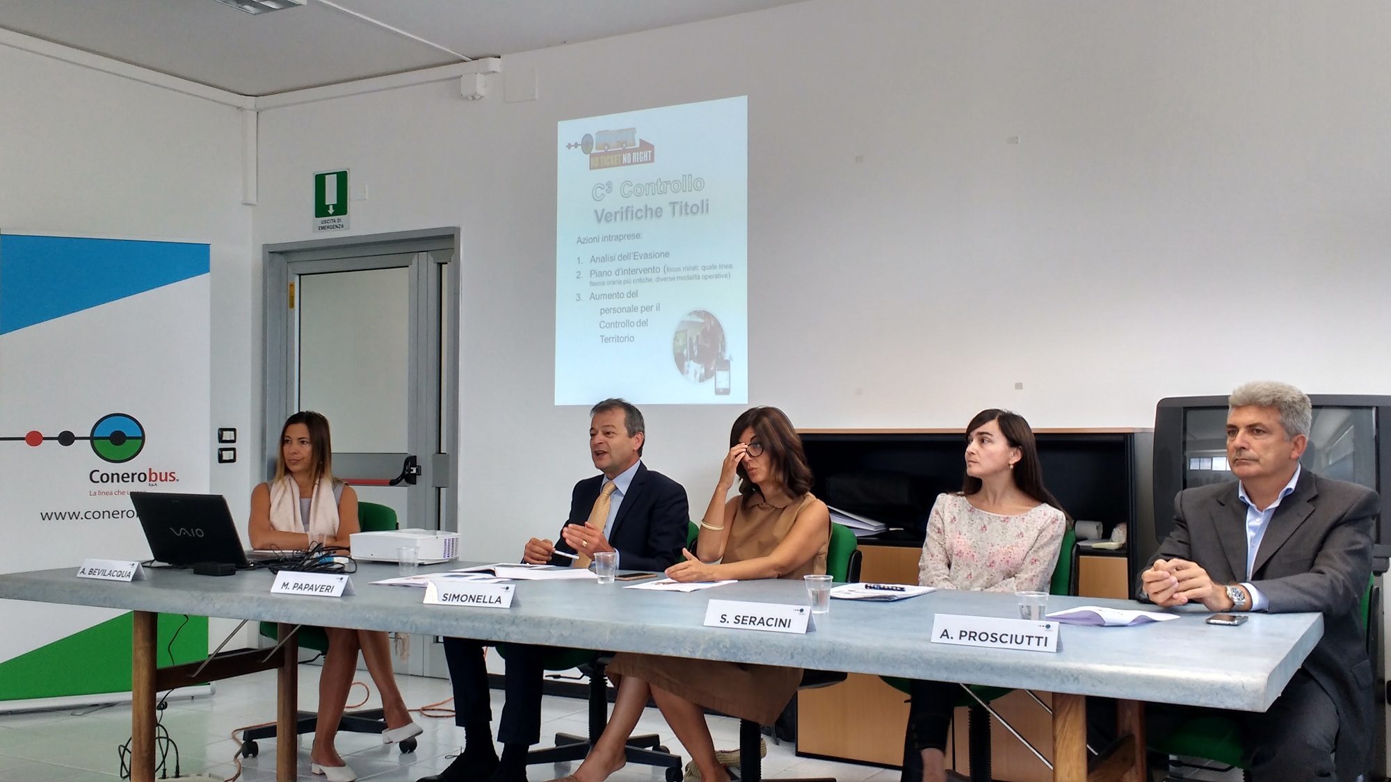 Per diffondere la cultura del mezzo pubblico a partire dai giovanissimi, Conerobus ha previsto tre incontri nelle scuole medie e superiori con lo slogan “No ticket, no right” incentrati sul rispetto della legalità a bordo e sulla sostenibilità ambientale del trasporto pubblico. Il tutto si aggiunge alle App e ai metodi di pagamento del biglietto via smartphone. Anche il sindaco Mancinelli ci ha messo la faccia nello spot diffuso sui social network. L’idea di fondo è semplice e la riassume il presidente Conerobus Muzio Papaveri. “Meglio una sanzione in meno, ma un biglietto venduto in più” commenta Papaveri. Già, perché delle multe da 50 euro l’una emesse ai “portoghesi” solo il 36% viene incassato dall’azienda: viene riscossa una multa ogni tre, nonostante tutte le azioni legali messe in campo per il recupero crediti. Ma quanti passeggeri non pagano il biglietto? “Il dato dell’evasione è molto variabile, cambia a seconda degli orari, del tipo di utenza, delle misure di controllo che prendiamo: sulla stessa linea in alcuni momenti ci può essere un 4% di evasione, in altri periodi dell’anno o della giornata il 10%. Tra le linee con minore evasione c’è la 1 / 4, ad esempio, dove molti viaggiatori hanno l’abbonamento” ha risposto Papaveri, senza sbilanciarsi sul dato assoluto dei passeggeri a “scrocco”.
