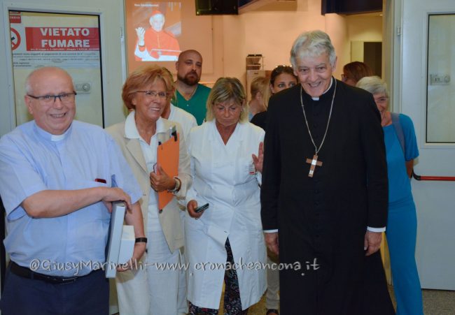 “Desidero manifestarvi il mio apprezzamento e incoraggiamento: nutrite il clima che ho trovato qui, le professionalità che si incrociano in questa struttura sanitaria debbono essere in un clima dove nessuno è proprietario di qualcuno e tutti sono a servizio di tutti” ha continuato Menichelli, prima di lanciare un suggerimento inaspettato. “Vivete la laicità, celebrate la laicità. E’ una parola in disuso, io ve lo dico brutalmente: questo ho imparato da Cristo. La laicità ci libera da superficialità e formalismi, significa essere simili, essere fratelli. Spesso vedo vincere l’ideologia, il ruolo. Questo non è laicità. Deve vincere solo la persona umana”. Una laicità che per Menichelli non significa abbandonare la morale. “Lo dico come assistente dei medici, ma questo vale per tutti, non solo per i cattolici: cari medici, vi prego di non accontentarvi del vostro codice deontologico. Cercate di vivere nella morale che abita la coscienza personale”. E infine l’invito alla fede. “Non abbiate paura di Dio, il mistero della vita e della morte non lo risolverete voi. Chiedete aiuto a lui”. Al termine dell’intervento, Menichelli è stato circondato dall’abbraccio degli operatori sanitari in attività e in pensione, tutti alla ricerca di una foto ricordo, mentre l’Azienda ospedali riuniti ha voluto donare una targa di ringraziamento al cardinale per la sua vicinanza in questi anni. Concluso a 78 anni il suo servizio come arcivescovo di Ancona e Osimo, Menichelli, a margine dell’incontro con i medici, ha annunciato che tornerà a vivere nella sua San Severino. “Raggiungo i miei famigliari, alla mia età ho diritto anche io ad allentare la attività” ha commentato con un sorriso il cardinale.