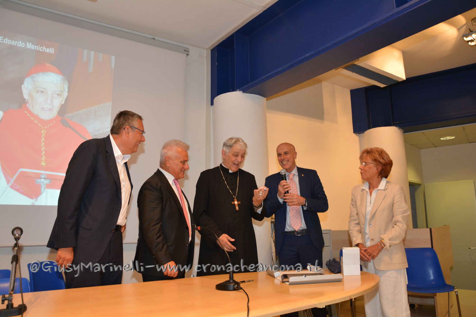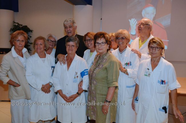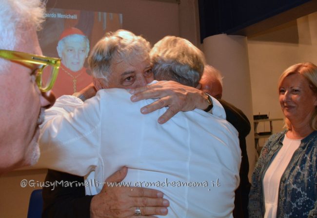 “Desidero manifestarvi il mio apprezzamento e incoraggiamento: nutrite il clima che ho trovato qui, le professionalità che si incrociano in questa struttura sanitaria debbono essere in un clima dove nessuno è proprietario di qualcuno e tutti sono a servizio di tutti” ha continuato Menichelli, prima di lanciare un suggerimento inaspettato. “Vivete la laicità, celebrate la laicità. E’ una parola in disuso, io ve lo dico brutalmente: questo ho imparato da Cristo. La laicità ci libera da superficialità e formalismi, significa essere simili, essere fratelli. Spesso vedo vincere l’ideologia, il ruolo. Questo non è laicità. Deve vincere solo la persona umana”. Una laicità che per Menichelli non significa abbandonare la morale. “Lo dico come assistente dei medici, ma questo vale per tutti, non solo per i cattolici: cari medici, vi prego di non accontentarvi del vostro codice deontologico. Cercate di vivere nella morale che abita la coscienza personale”. E infine l’invito alla fede. “Non abbiate paura di Dio, il mistero della vita e della morte non lo risolverete voi. Chiedete aiuto a lui”. Al termine dell’intervento, Menichelli è stato circondato dall’abbraccio degli operatori sanitari in attività e in pensione, tutti alla ricerca di una foto ricordo, mentre l’Azienda ospedali riuniti ha voluto donare una targa di ringraziamento al cardinale per la sua vicinanza in questi anni. Concluso a 78 anni il suo servizio come arcivescovo di Ancona e Osimo, Menichelli, a margine dell’incontro con i medici, ha annunciato che tornerà a vivere nella sua San Severino. “Raggiungo i miei famigliari, alla mia età ho diritto anche io ad allentare la attività” ha commentato con un sorriso il cardinale.
