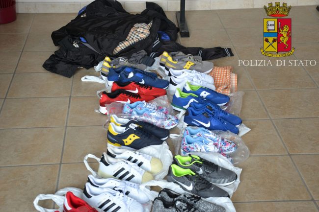 Sempre nel corso dei controlli nell’area retrostante la stazione ferroviaria, in direzione del lungomare, gli agenti hanno notato un giovane extracomunitario che teneva in mano un borsone di notevoli dimensione. Hanno deciso di controllare l’uomo e verificare il contenuto del borsone. Il soggetto N.O. , 47 anni, è risultato essere un cittadino di origine senegalese. All’interno del borsone sono state trovate numerose paia di scarpe di noti marchi di moda. Condotto negli uffici del Commissariato, gli agenti hanno verificato la regolarità del permesso di soggiorno dell’uomo ma hanno appurato che le scarpe contenute, circa 30, erano oggetto di contraffazione. Il 47enne è stato quindi denunciato per il possesso della merce contraffatta, tutta sottoposta a sequestro.