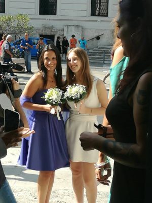 Le ragazze lavorano entrambe alle Poste ma sono due artiste, scrittrici di romanzi fantasy, horror e di fantascienza. L’ultima fatica di Arianna, che studia alla scuola Comics di Jesi, è attesa in libreria per ottobre e si intitolerà ‘Runaway’ (Europa Edizioni), mentre a novembre sarà dato alle stampe il nuovo romanzo di Angela. Il titolo è ancora top secret. “Abbiamo scelto il castello di Fano perché volevamo organizzare questa festa – racconta Arianna- Eravamo tutti in cosplay con il nostro gruppo di amici con i quali ci vediamo al ‘Lucca Comics’ e ci siamo vestiti come i personaggi della serie Tv ‘Once upon a time’. Dopo la ripetizione del “si” per chi non aveva potuto partecipare alla cerimonia ufficiale di Ancona, al termine dell’aperitivo tutti insieme abbiamo riproposto una scena di un episodio della serie Tv, una puntata musical. Abbiamo cantato e ballato. E’ stato bellissimo”.