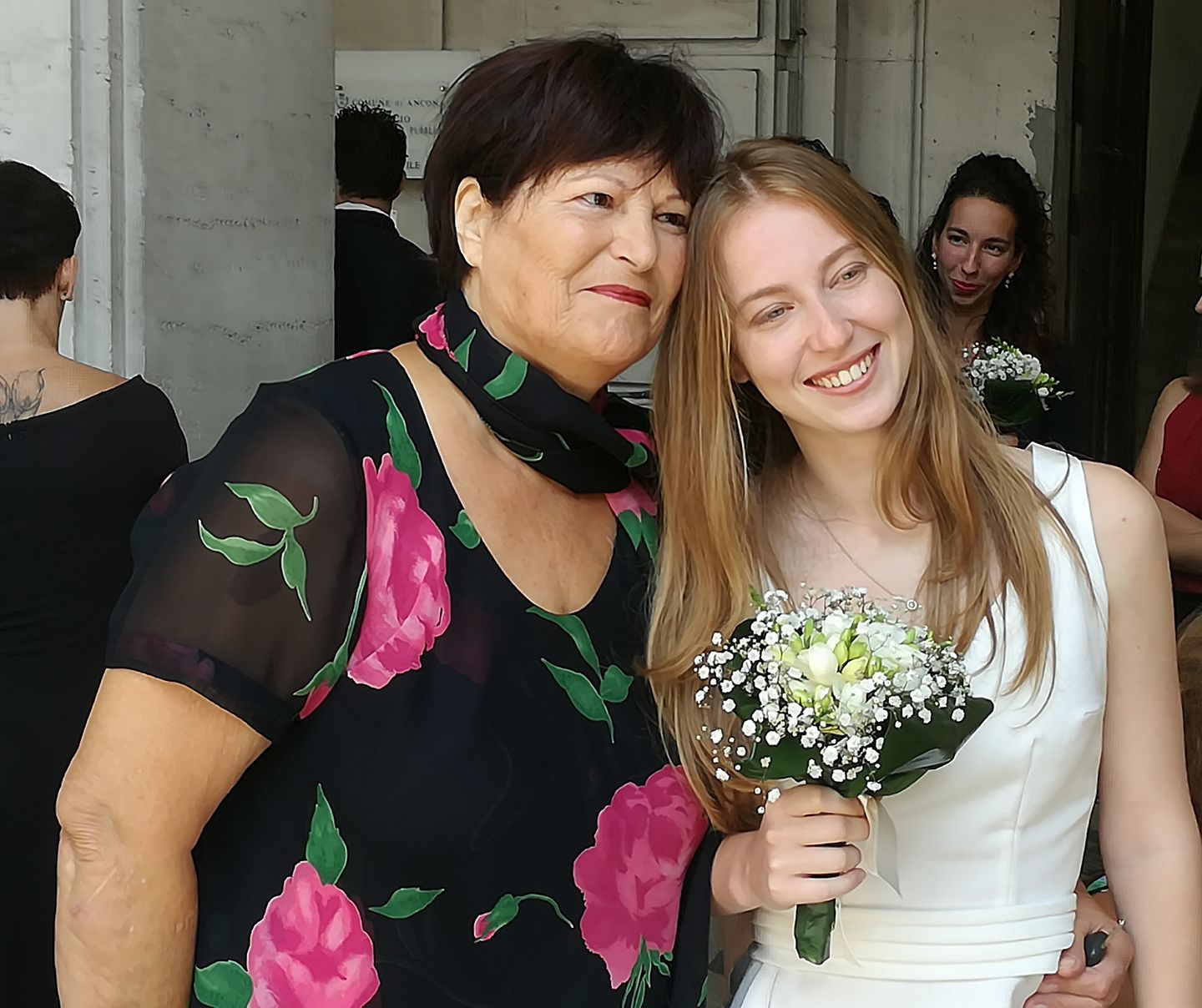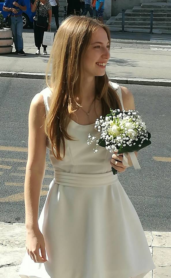 Arianna Dongu con il bouquet a palazzo comunale
