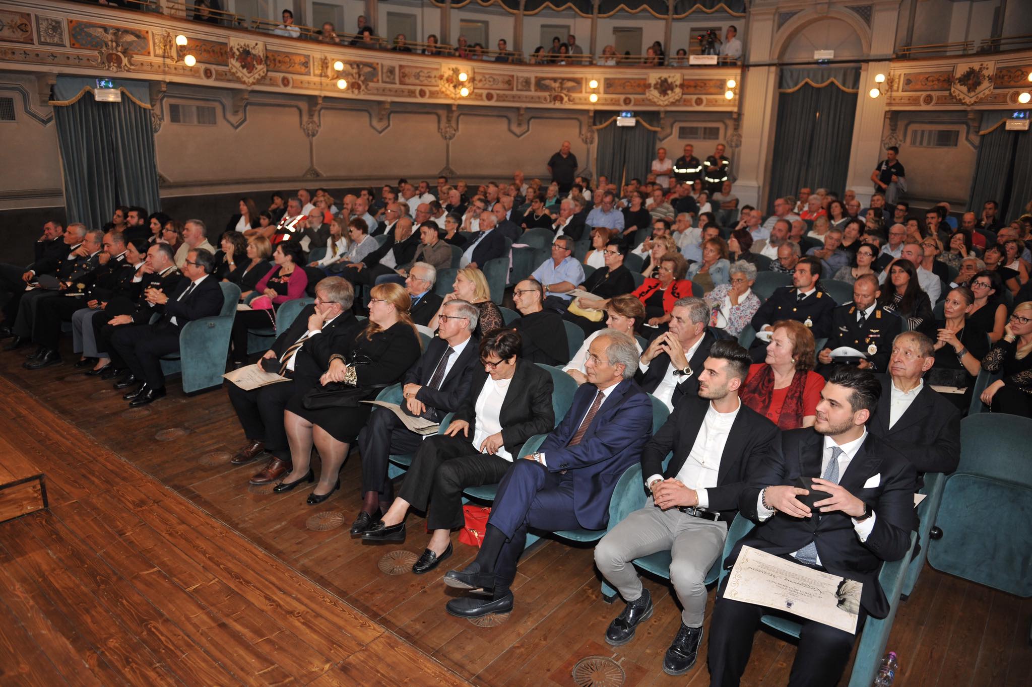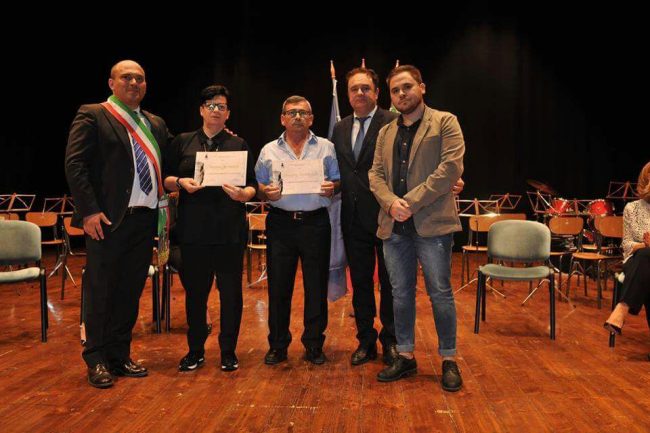 La serata, presentata da Lucia Santini, è stata aperta con dall’Inno di Mameli eseguito dalla Banda Città di Osimo, diretta dal maestro Marco Guarnieri. Uno dei momenti più toccanti della serata è arrivato con la consegna del riconoscimento alla memoria dei coniugi Marina Serraiocco e Dino Di Michelangelo, scomparsi nella tragedia di Rigopiano. Sul palco a ritirare l’attestato i genitori di Marina, Tommasino Serraiocco e Clotilde Fabrizi, e il nipote di Dino, Francesco Di Michelangelo. Applausi a scena aperta per la signora Clotilde, che, visibilmente commossa, ha rivolto un caloroso ringraziamento alla cittadinanza osimana per la solidarietà dimostrata (leggi l’articolo).