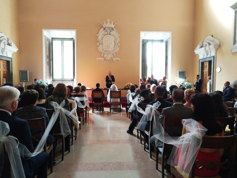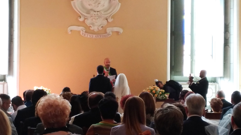 Osimo, gli sposi Miriam Simonetti e Marco Albanesi uniti in matrimonio dall’assessore alla cultura del Comune di Chiaravalle, Francesco Favi