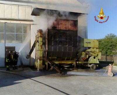 Incendio per autocombustione del mais in un silos utilizzato per essiccarlo. Il principio d’incendio è scoppiato stamattina verso le 8 in un’azienda di Jesi che produce cereali, in via del Verziere ed è stato spento quasi subito. I vigili del fuoco di Jesi però hanno impiegato quasi 4 ore di lavoro per mettere in sicurezza il contenitore, scaricando tutto il mais che conteneva e bonificando l’ambiente per evitare un possibile ritorno di fiamma.