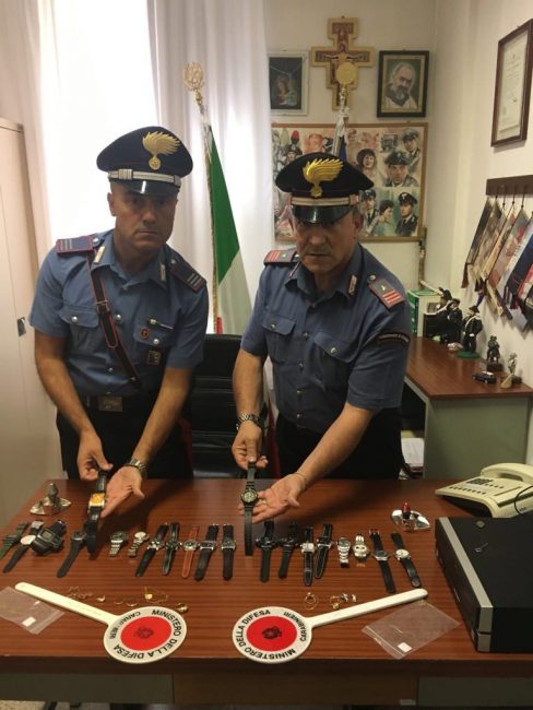 Furto in villa e riciclaggio del bottino, in 6 finiscono nei guai. I carabinieri della compagnia di Senigallia hanno denunciato in stato di libertà 6 persone con l’accusa a vario titolo di furto in abitazione e riciclaggio. La “banda” vede un 41enne cagliaritano identificato come il ladro materiale e poi un 38enne russo e sua madre 57enne, una 28enne e di una 24enne entrambe di Senigallia ed infine di una 32enne di Fano commessa presso un esercizio di compro oro di Senigallia nei ruoli dei ricettatori dei gioielli rubati. Il fatto è accaduto martedì scorso. Durante i lavori di manutenzione di una villa in via Nigra a Senigallia, approfittando del cancello aperto, è riuscito ad entrare al piano terra. Fermato da uno degli inservienti aveva finto di essersi perso. Dopo pochi minuti, il padrone di casa si è accorto della mancanza di un cofanetto dove conservava circa 30 orologi italiani di pregio e alcuni oggetti in oro, ricordo dei suoi genitori. Sul posto sono intervenuti i carabinieri, che hanno subito acquisito le registrazioni dell’impianto di videosorveglianza installato nella villa. Dai filmati, i militari hanno identificato e riconosciuto una vecchia conoscenza: il cagliaritano di 41anni, vagabondo, che ogni anno compare a Senigallia nel periodo estivo e che era già stato denunciato per un borseggio in spiaggia. L’uomo è stato rintracciato ieri pomeriggio nella zona del porto turistico ed al polso portava proprio un orologio trafugato nella villa. Condotto in caserma e interrogato, l’uomo ha ammesso di aver commesso il furto e di essersi disfatto della refurtiva attraverso un suo conoscente del luogo con il quale si era rivolto a un compro oro del centro. Il complice è stato identificato nel 38enne russo. I carabinieri hanno poi visitato il compro oro e dal registro hanno trovato non solo l’operazione del russo, appena due ore dopo il furto, con cui aveva venduto due fedi e un anello in oro. Dalla contabilità del negozio infatti è spuntata anche la madre del russo, che aveva venduto 20 minuti prima altri due anelli d’oro. Quindi il giorno dopo sono state le due ragazze di Senigallia a comparire nel registro per aver venduto un bracciale, due paia di orecchini ed una catenina d’oro. Il materiale, ancora presente nel negozio seppur in parte già sminuzzato, è stato riconosciuto senza alcun dubbio dal proprietario. Gli oggetti, che dal registro risultano essere stati acquistati dal negozio dietro corrispettivo di 1.320 euro, sono stati quindi sequestrati e le persone coinvolte sono state denunciate, compresa la commessa la cui condotta, dai primi accertamenti dei carabinieri, è apparsa in accordo con gli altri. Il 38enne russo invece ha fatto ritrovare gli altri 20 orologi provenienti dal furto.