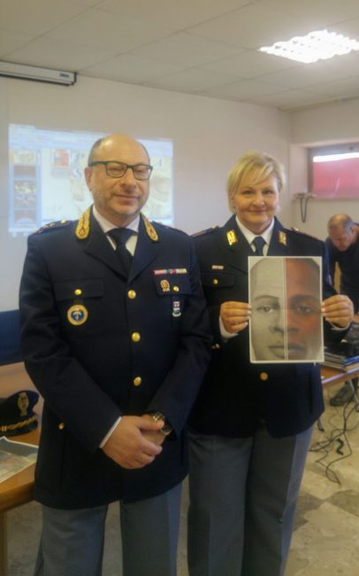 Elena Pagani mostra il suo lavoro con il capo gabinetto della polizia scientifica interregionale Massimiliano Olivieri