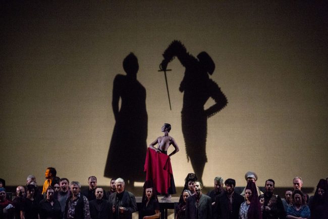 E’ stato affidato a un titolo forte come la Carmen di Bizet, nuovo allestimento del Massimo dorico, l’apertura ieri sera della 15esima stagione lirica del Teatro delle Muse. E il pubblico ha risposto numeroso, agghindato da gran sera, impaziente di ascoltare il debutto nel ruolo del mezzosoprano reggiano Martina Belli. La direttrice di Marche Teatro, Velia Papa, assieme al direttore artistico Vincenzo De Vivo, fanno gli onori di casa. Tra il secondo e il terzo atto la Papa si concede una sosta al bar con il sindaco Valeria Mancinelli: un commento alla serata e via di nuovo in platea. Gli abbonati sono in aumento rispetto allo scorso anno (il teatro dichiara un + 35%), la soddisfazione è dunque tangibile. Il Maestro Guillaume Tourniaire, con piglio sicuro e rassicurante, guida l’Orchestra Rossini (in un organico che potrebbe essere più consistente nelle file degli archi). Le tre ore e trenta di spettacolo (un intervallo, e due brevi pause tra il primo e il secondo atto, e tra il terzo e il quarto, con qualche incauto spettatore che si avventura al bar o al bagno) scorrono. La Belli supera la prova, ma la vera star della serata è il soprano Francesca Sassu, applauditissima nel ruolo di Micaela. Domani, ore 16, Carmen replica: superata l’emozione della prima, si confida in una rappresentazione più sensuale, sanguigna e carnale dell’intero cast (figuranti inclusi, impegnati, in particolare nel secondo atto, in accennati e sbiaditi movimenti scenici) come ci si aspetterebbe dalla regia di Francesco Saponaro, e nel superamento di qualche sbavatura tecnica riscontrata ieri sera (relativa soprattutto alle luci). Carmen è donna che non accetta compromessi.