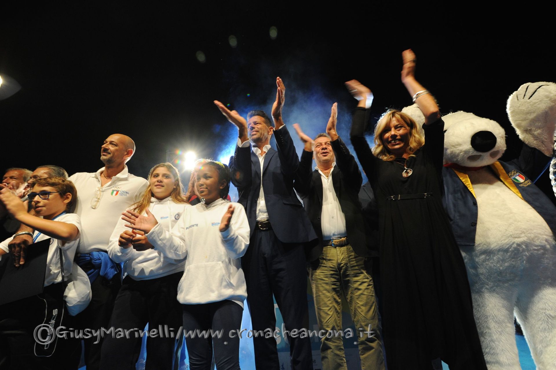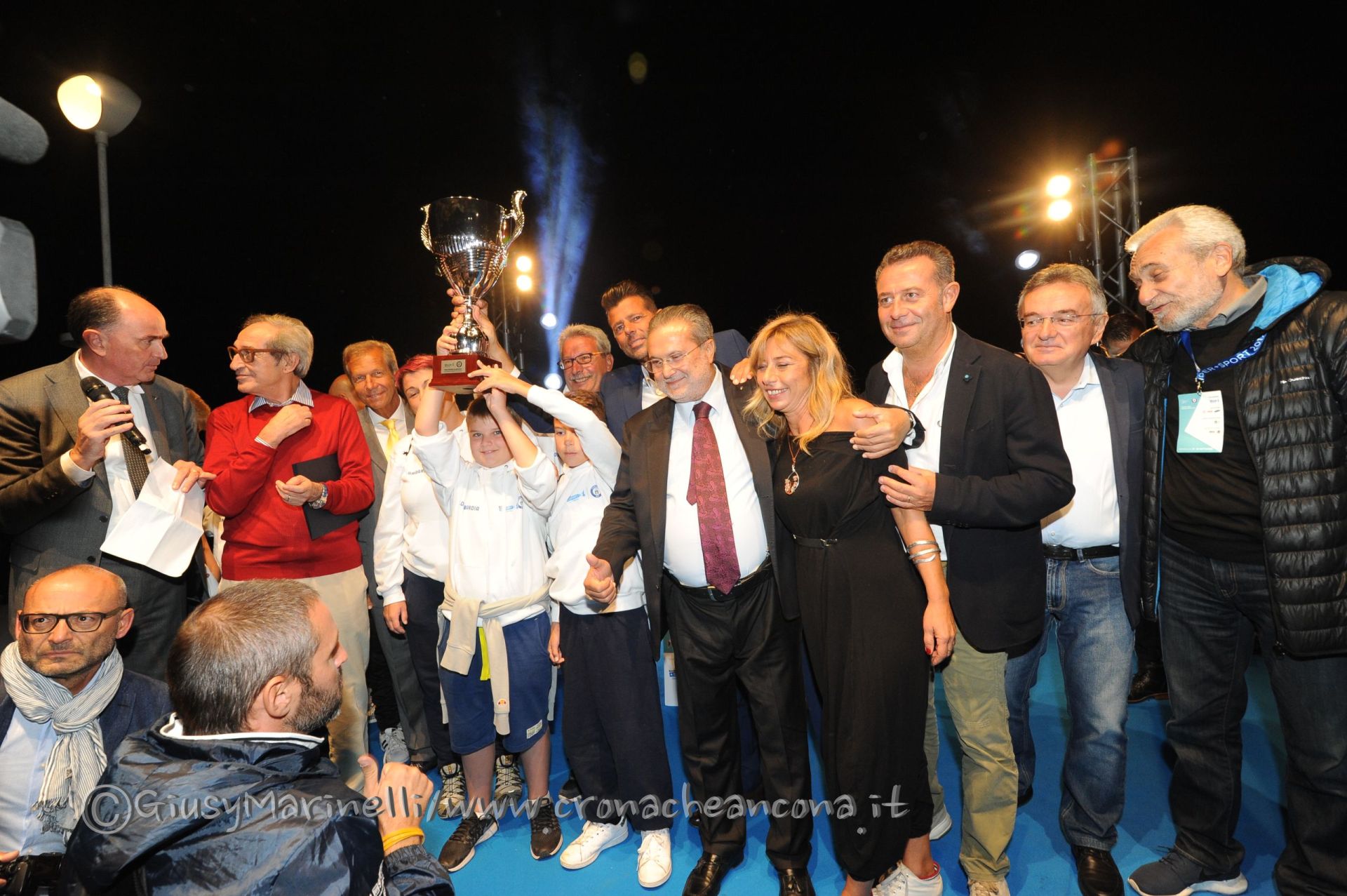 Lo staff del Coni Marche ed il presidente Fabio Luna durante i festeggiamenti in occasione della cerimonia di chiusura del Trofeo