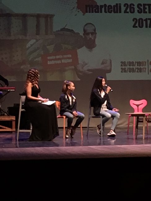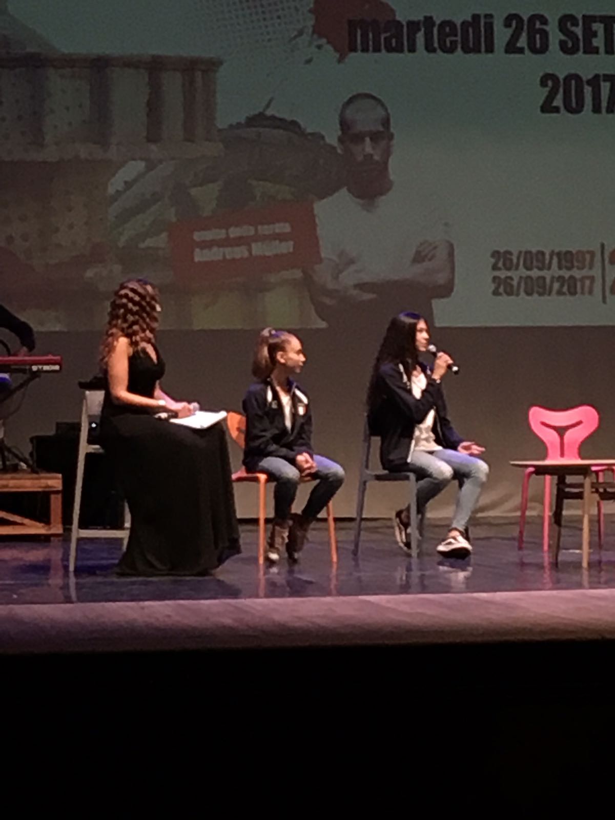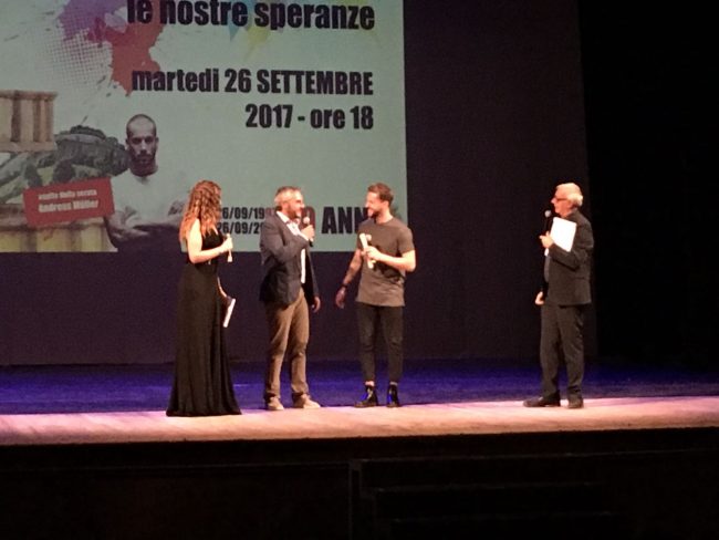 Nell’anteprima di oggi pomeriggio erano intervenuti i rappresentanti della amministrazione comunale, come l’assessore allo sport, Francesco Scaloni e tanti sportivi under 20 di vari discipline, dall’automobilismo alla boxe e al lancio del peso, con Andreas Müller che ha ballato e che stasera era di nuovo davanti agli spettatori. Tutti i giovani avevano speranze per il loro futuro ed avevano ascoltato racconti del terremoto del 97 da genitori e nonni non avendolo mai vissuto.