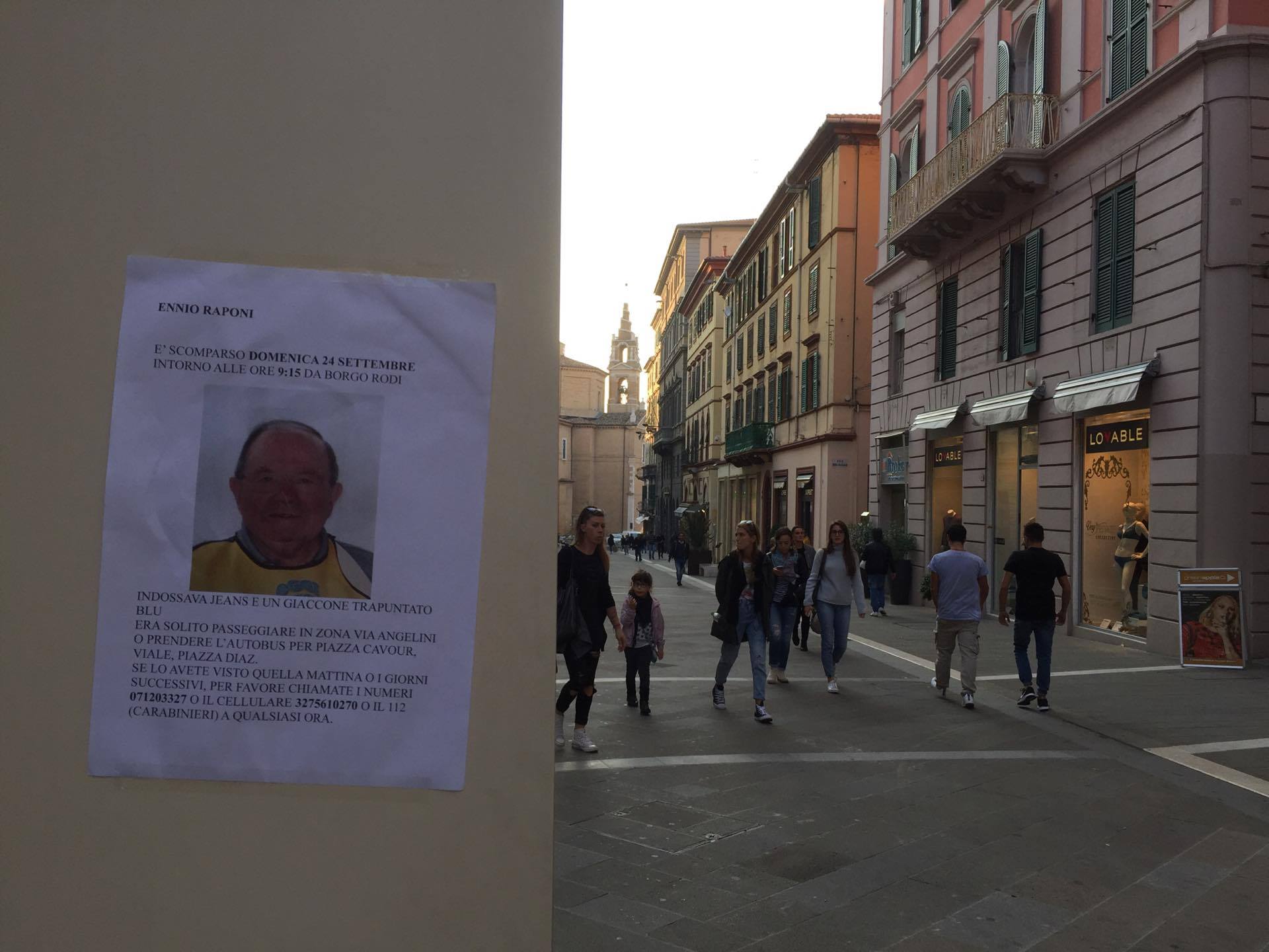 Quarto giorno di ricerche senza lasciare traccia, continua l’angoscia della famiglia Raponi per la scomparsa del loro Ennio. Domenica mattina verso le 9.30 è uscito di casa salutando la moglie, assicurando che sarebbe rincasato dopo la passeggiata mattutina, ma nella sua abitazione di via Gentiloni non è più tornato. I carabinieri stanno visionando le immagini delle telecamere della zona di Borgo Rodi, ad Ancona, per trovare una pista che possa condurre all’80enne, che soffre anche di alcuni problemi di salute e leggere amnesie dovute all’età. Nessuna traccia nemmeno dall’azienda dei trasporti pubblici Conerobus, negli ospedali o tra i tassisti. I familiari hanno controllato anche in stazione ferroviaria. La città è stata tappezzata di volantini per raccogliere quante più informazioni utili alla ricerca, mentre è stato lanciato anche un appello tramite la trasmissione Rai “Chi l’ha visto” andato in onda stamattina alle 11.30. L’uomo si è allontanato da casa con un paio di jeans, un giaccone blu, scarpe nere Nike, ha con sé il portafoglio e il cellulare, ma il telefono risulta spento già dalle 10.30 di domenica, quando la moglie ha tentato di contattarlo dopo averlo cercato a piedi nelle strade vicino a casa.