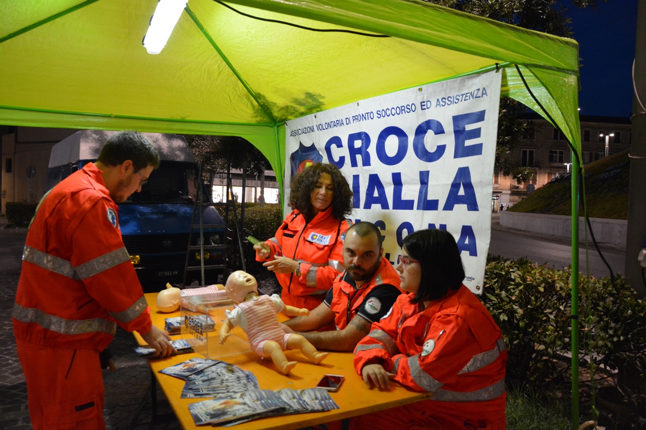 Lo stand della Croce Gialla presente alla Notte Bianca del Piano per dare consigli e informazioni utili sui corsi di primo soccorso e per diventare volontari