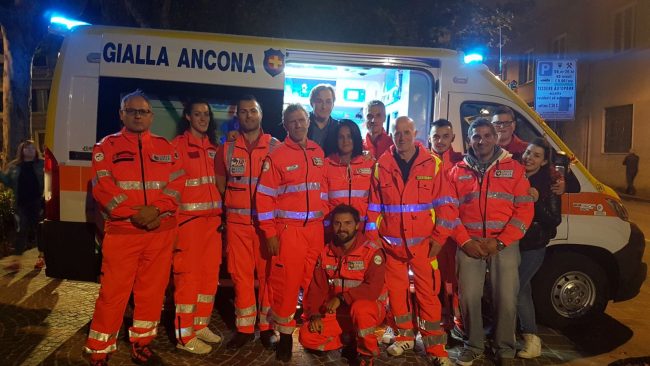 La generosità degli anconetani continua a premiare il lavoro della Croce Gialla di Ancona. Inaugurata sabato sera in corso Carlo Alberto alle 21, durante la notte bianca del Piano, la seconda ambulanza acquistata grazie alle donazioni del 5×1000 dell’Irpef dei cittadini. Il mezzo è identico a quello già inaugurato lo scorso 4 maggio durante le celebrazioni di San Ciriaco. Entrambe le ambulanze sono state acquistate con le donazioni della città. Madrina dell’inaugurazione Loretta Francella, vedova di Adrio Francella, lo storico consigliere comunale e presidente di Circoscrizione impegnato per anni nella ricostruzione di Posatora dopo la frana del 1982. La benedizione del mezzo è stata impartita da don Vittorio Pisu, parroco dei Salesiani, alla breve cerimonia hanno partecipato il sindaco Mancinelli e l’assessore Foresi.