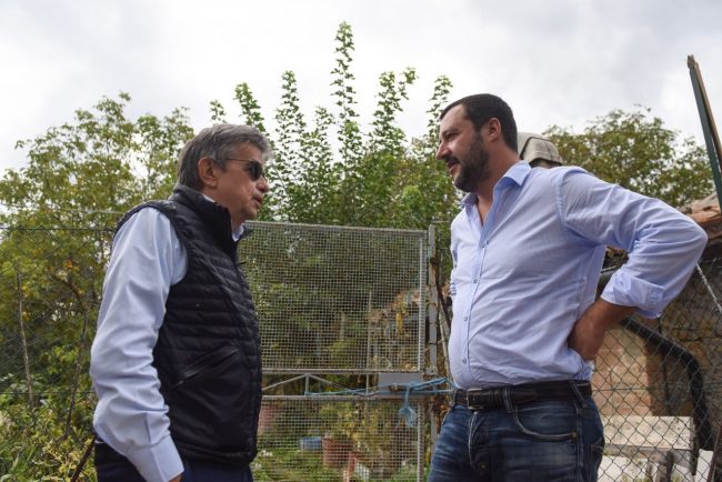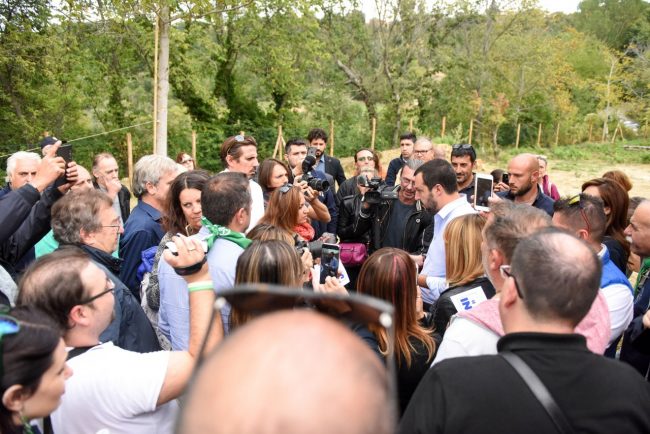 Un caffè da Peppina, qualche chiacchiera parlando della bontà delle castagne della zona, i pomodori colti nell’orto e mangiati sul posto. Detta così, non fosse che protagonista di queste azioni era il leader della Lega, Matteo Salvini, la visita nel primo pomeriggio a casa di Giuseppa Fattori poteva sembrare quella di un parente o di un conoscente. Ma Salvini, giunto con 20 minuti d’anticipo rispetto all’orario previsto (le 14) a San Martino di Fiastra, ha anche parlato con l’anziana della proposta di legge che ha depositato in Senato il 27 settembre (leggi l’articolo) per consentire a chi ha una casa nel cratere di poter passare l’inverno nella propria terra.