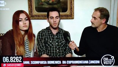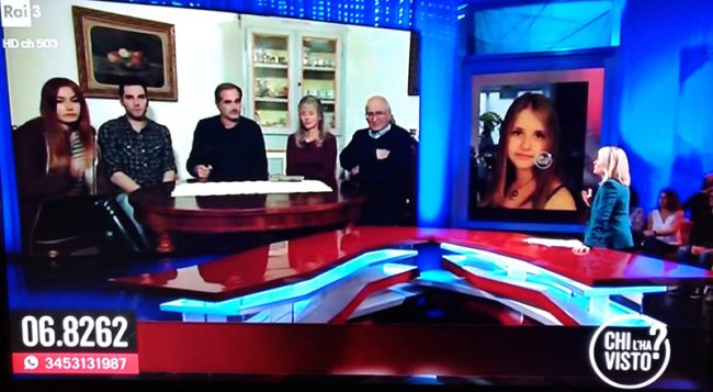 I cani molecolari hanno fiutato una traccia in via Matteotti, ma la mamma in diretta su Rai Tre, stasera ha ribadito che la figlia non chiedeva mai passaggi in auto. “Ha la patente – ha detto Lyuba – e se non l’accompagnavamo noi guidava da sola la macchina”. In trasmissione è arrivata la segnalazione da Roma, di una signora che sostiene di aver visto la studentessa con quel cappotto beige sul braccio perché oggi era una giornata molto calda e assolata nella capitale. Prima della chiusura della puntata il colpo di scena: Sara ha riacceso il suo cellulare e, a telecamere spente, sul display è arrivata una serie di messaggi inquietanti e macabri ora al vaglio dei carabinieri. Diverse fotografie, una che riprende una mano dove è stata incisa a sangue una piccola M , con un taglierino o con qualcosa di contundente. I carabinieri di Cupramontana stanno verificando la provenienza delle foto e soprattutto stanno cercando di risalire all’utenza telefonica che ha spedito le immagini. “Se si è trattato di uno scherzo, è di pessimo gusto” che commentato la conduttrice prima dei saluti finali.