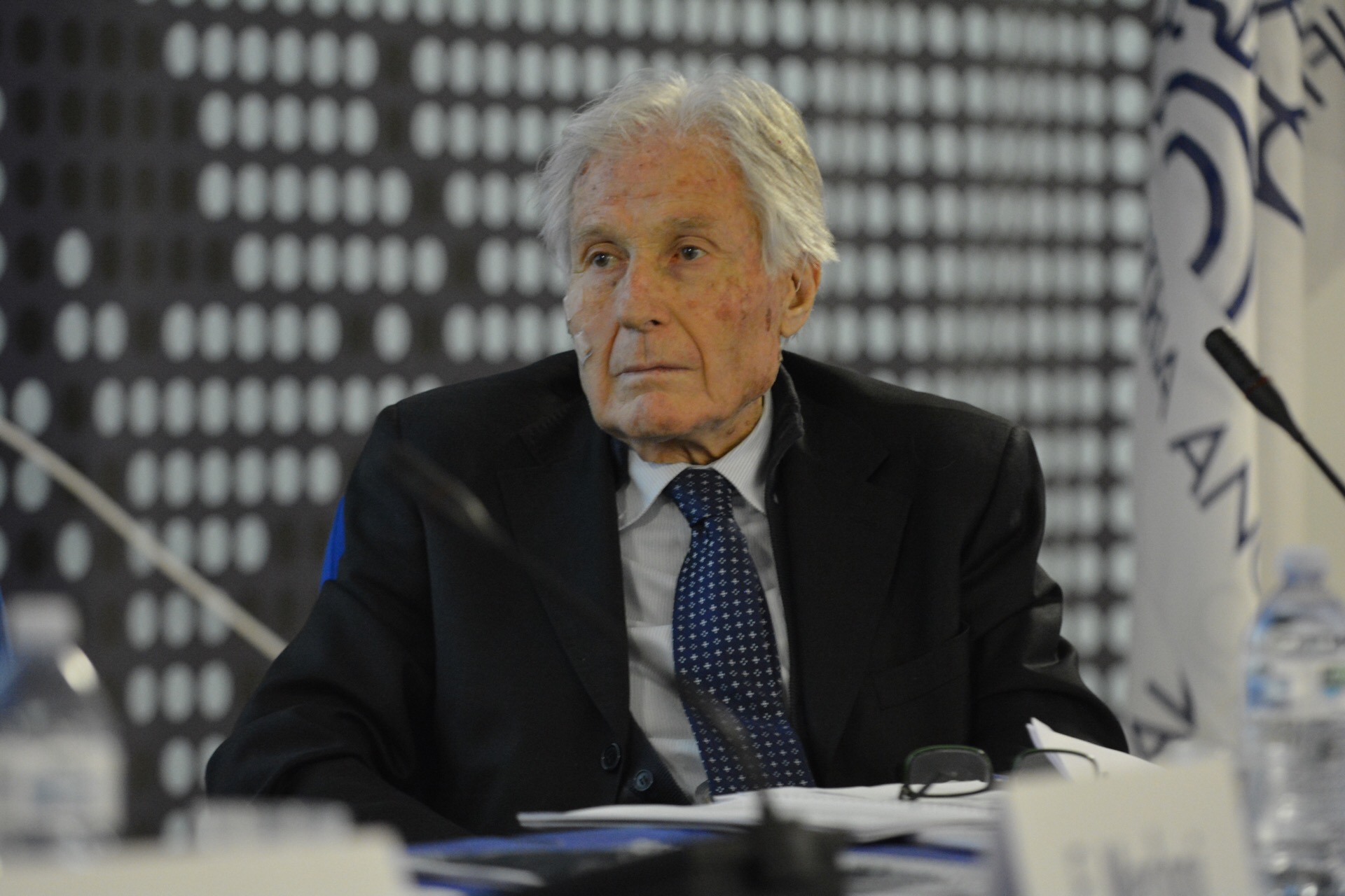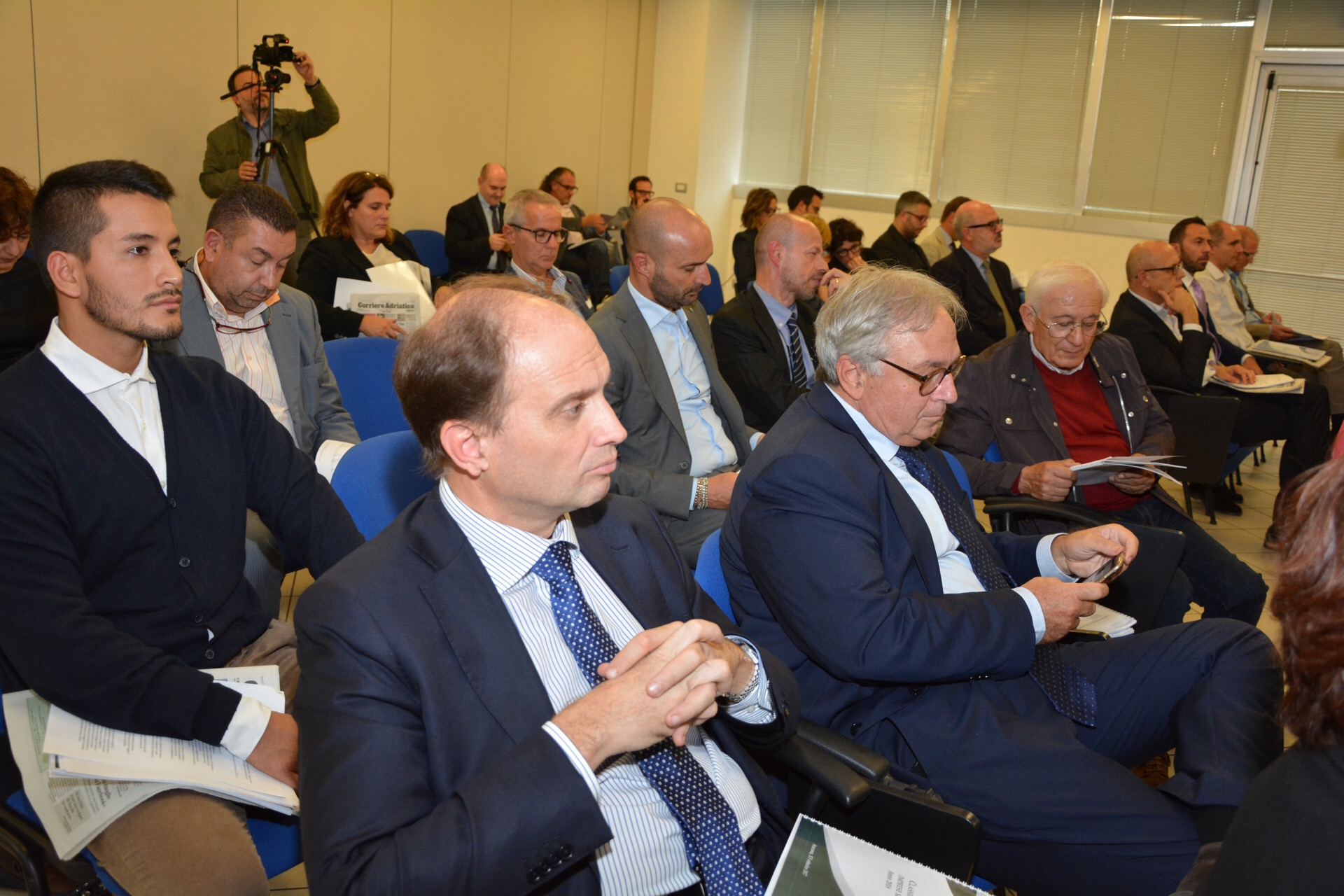 La presentazione della classifica delle imprese marchigiane da sx Iacobucci, docente Univpm, Francesco Merloni, presidente della Fondazione, Valeriano Balloni ideatore della classifica