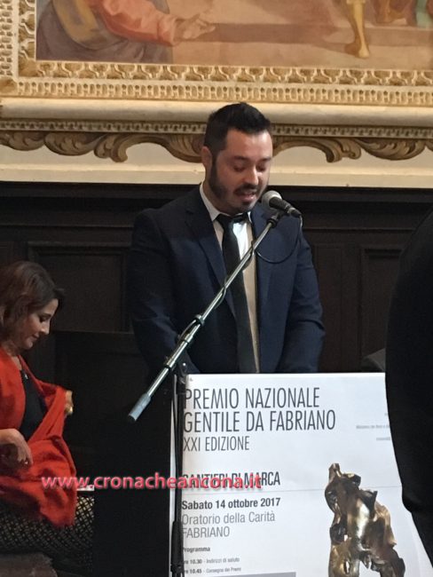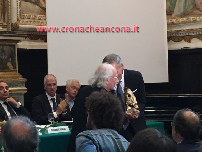 Ai saluti di rito di Galliano Crinella e del presidente di giuria Vilberto Stocchi, sono subito seguiti le premiazioni e gli interventi. Primo, emozionante, quello dell’architetto Paolo Isabettini, fondatore dell’Associazione Daje Marche, che da un container di Tolentino dopo il terremoto del 30 ottobre 2016 ha fatto ripartire l’economia di negozi e produttori locali istituendo un portale di vendita online, che a ridosso del Natale ha spedito migliaia di confezioni con pasta, ciauscolo, liquori, vini delle Marche dell’entroterra. Nell’intervento i numeri della rinascita post-sisma e la lettera che accompagnava il kit dei pacchi spediti, dedicato «a chi voleva sentirsi marchigiano la 100%». Il biglietto accompagnatorio recitava: «Non sei di fronte a un semplice pacco regalo; il Daje Marche Starter Kit è la nostra fonte di riscatto. Sapere che i nostri prodotti saranno presenti sulla tua tavola ci riempie di orgoglio. Il terremoto squarcia. Se riusciremo a lasciarci dietro le spalle questo periodo sarà grazie a te che ci hai scelti».