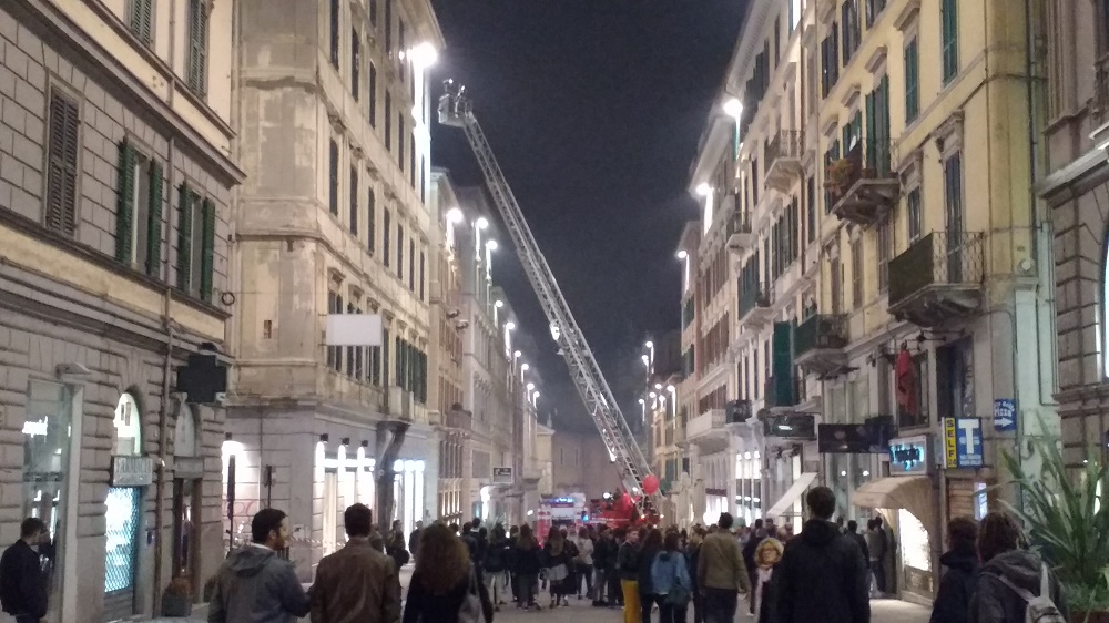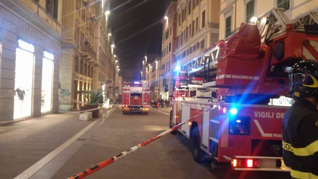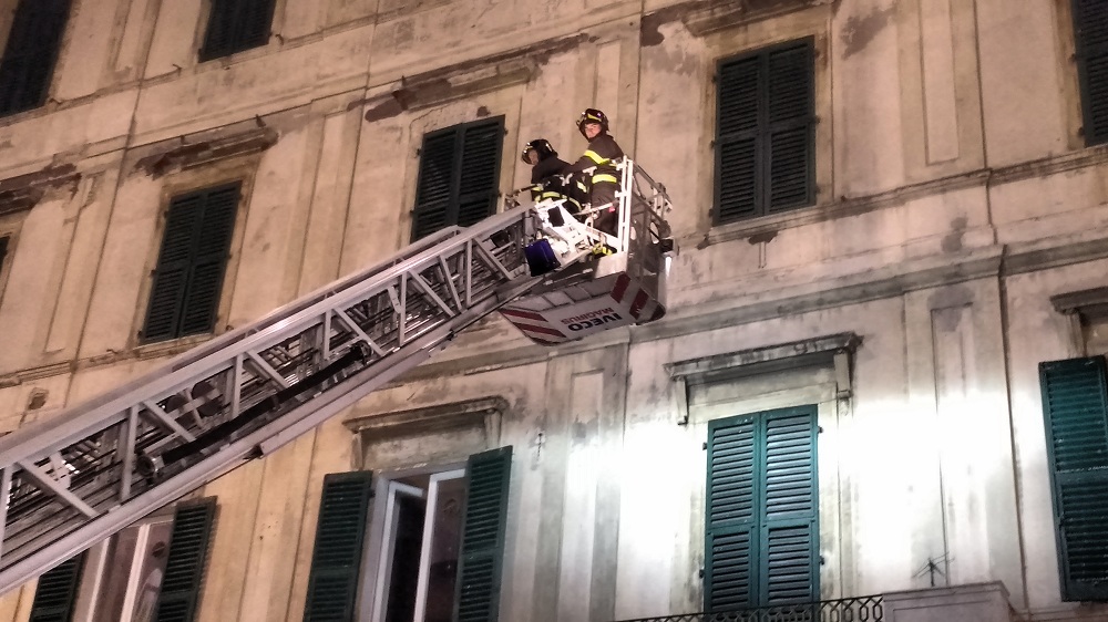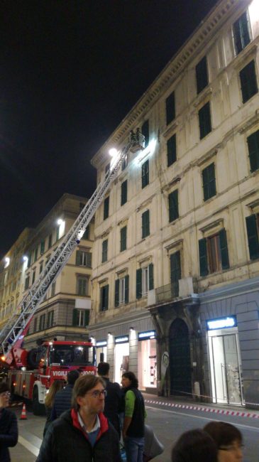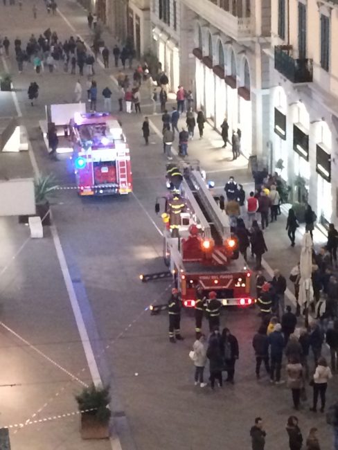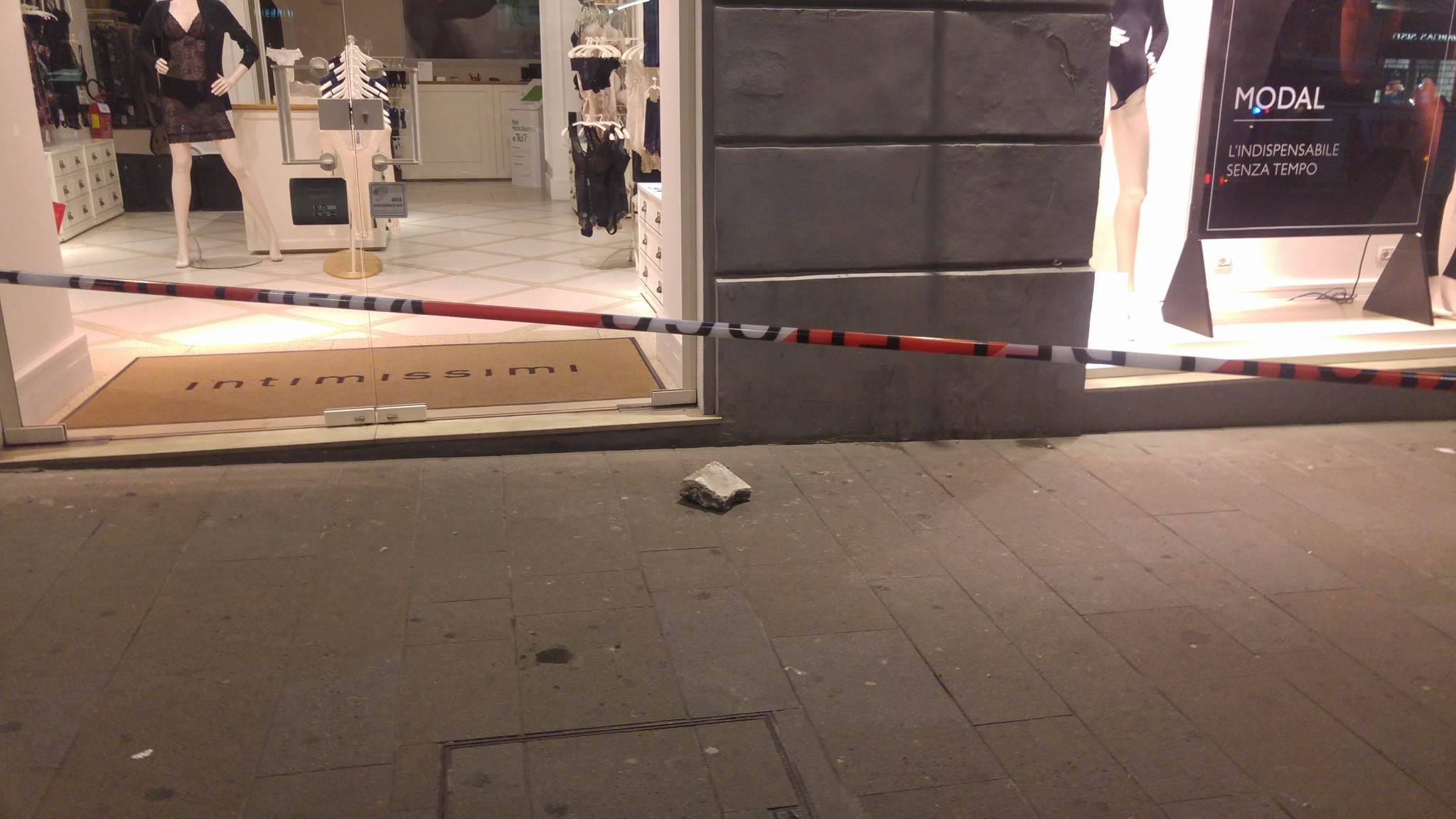 Piovono calcinacci sull’isola pedonale, arrivano i vigili del fuoco per mettere in sicurezza il palazzo di corso Garibaldi. Un grosso pezzo di cornicione è caduto sulla strada ieri sera attorno alle 22.15 e solo per caso non ha colpito qualche passante. Il crollo infatti è avvenuto davanti alla vetrina di Intimissimi e a pochi passi dai tavolini del Bar Torino, che stava chiudendo per la conclusione della serata. Per fortuna dunque nessun ferito, ma l’intervento dei vigili del fuoco è stato tempestivo per controllare le altre parti pericolanti del palazzo e riportare alla sicurezza l’arteria principale dell’isola pedonale. L’intervento dei vigili del fuoco con due mezzi ha subito richiamato una piccola folla di curiosi.