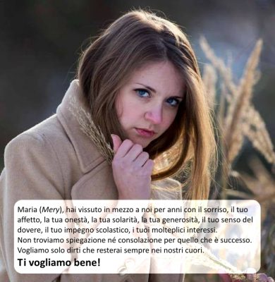 Il messaggio di affetto degli studenti e dei docenti dell’Itc Cuppari di Jesi per ricordare Mariya comparso sul sito della scuola
