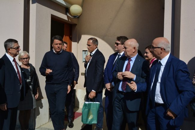 Il Frecciabianca con la delegazione di ‘Destinazione Italia’ al seguito dell’ex premier era arrivato nello scalo di Osimo Stazione puntuale poco dopo le 11. Attendevano Renzi, oltre al cordone di forze dell’ordine, il sindaco Pugnaloni e il vice sindaco Mauro Pellegrini, gli assessori Federica Gatto e Flavio Cardinali, il segretario uscente Pd di Osimo, Matteo Canapa, con il capogruppo consiliare dem Giorgio Campanari con i consiglieri Filippo Invernizzi e Diego Gallina Fiorini. Ma sulla banchina c’erano anche l’ex rettore di Camerino, Flavio Corradini, Silvia Rosati della direzione nazionale Pd e diversi esponenti democrat di Castelfidardo, Sirolo e Numana. Appena sceso dal vagone, Matteo Renzi ha stretto la mani ad alcun sostenitori e si è concesso ai selfie. Un’anziana l’ha avvicinato per raccomandargli di ritoccare al rialzo le pensioni. “Ho un assegno di appena 300 euro al mese” ha ricordato la signora al braccetto del marito. “Beh allora signora, mi raccomando, non si separi” ha scherzato il segretario Pd.