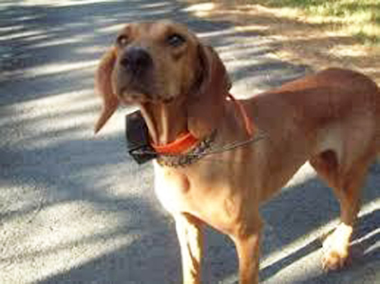 Il cane con un collare elettrico che infligge dolorose scosse sul collo