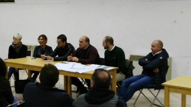 Il sindaco Pugnaloni (terzo da destra) con assessori e tecnici ieri sera all’assemblea di quartiere di Passatempo