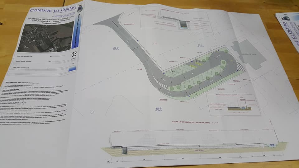 A primavera l’asilo di Passatempo avrà una nuova entrata non più pericolosa, che si affaccerà sul nuovo parcheggio realizzato sul retro dell’edificio (leggi l’articolo). Il progetto è stato presentato ieri sera all’assemblea di quartiere dal sindaco di Osimo, Simone Pugnaloni. “Si tratta del progetto esecutivo del parcheggio della scuola d’infanzia – ha spiegato il primo cittadino- Dopo il restyling estivo che ha garantito standard elevatissimi di vulnerabilità sismica all’immobile, potatura alberi giardino scuola, interventi aggiuntivi al tetto per evitare infiltrazioni acque piovane e sistemazione ghiaia su terreno dove giovano i bambini, per marzo avremo la certezza che l’entrata e l’uscita della scuola non sarà piu’ lungo la via Montefanese. La messa in sicurezza di genitori e bambini era attesa da anni, noi abbiamo preso un impegno per risolvere il problema, ora è certezza. Il parcheggio sorgerà dietro la scuola con ingresso ed uscita da Via Amendola”.