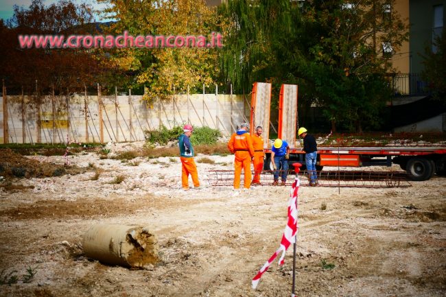 La Scuola Don Petruio è la prima scuola del cratere finanziata interamente con fondi pubblici, per un totale di 1 milione e 360 mila euro. L’edificio sarà ad altissima efficienza energetica, con le pareti portanti in telai in legno lamellare, e sarà costituito da due blocchi collegati da uno spazio connettivo con pareti in vetro. Dovrà ospitare 120 alunni. Il cantiere, aperto oggi, secondo i programmi dovrebbe concludersi tra 100 giorni. «Io sono qui perché si apre un cantiere − dichiara la commissaria −. L’esperienza di Fabriano serve da esempio per accelerare tutti i lavori». Parole contestate da alcuni cittadini arrivati sul cantiere accusando i legislatori di poca chiarezza nelle norme relative alla ricostruzione. Accuse alle quali la commissaria ha replicato citando il decreto n. 8 di marzo 2017 per il procedimento di richiesta fondi, definendolo «chiarissimo e privo di successive modifiche. Si nomina l’amministratore di condominio, il tecnico e si fa la richiesta. Oggi arriveranno ai sindaci e ai capi degli uffici speciali tutte le specifiche per la ricostruzione leggera, per le schede con esito B. Quello che dobbiamo fare è anticipare i tempi per le E: ci sono tante casistiche e dobbiamo essere pragmatici».