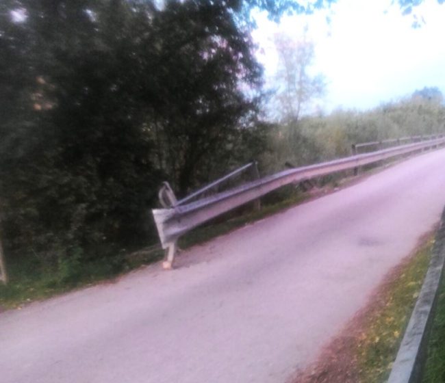 L’altra notte e’ stato danneggiato, per cause accidentali, il guardrail sul ponte del Musone, vicino alla confluenza cpn il Fiumicello. La segnaletica stradale invita a moderare la velocità e a fare attenzione. Sembra che un mezzo agricolo (il cui autista è ignoto), nell’atto di attraversare il ponte, abbia impattato contro la protezione stradale, scardinandola. Per diverse ore, mercoledì pomeriggio, una pattuglia della polizia locale di Osimo ha stazionato nella zona in attesa dell’arrivo degli operai e del servizio segnaletica per mettere in sicurezza l’area del ponte. Gli Amici della Pista ciclabile, l’associazione che ha cura dell’anello di 5 chilometri di Campocavallo, sospetta invece il dolo e l’atto vandalico nell’ultimo episodio di danneggiamento compiuto due notti fa, sempre alla pista ciclabile. Qualcuno ha infatti rovinato la bacheca di legno sistemata tra le panchine che punteggiano il boschetto.