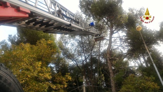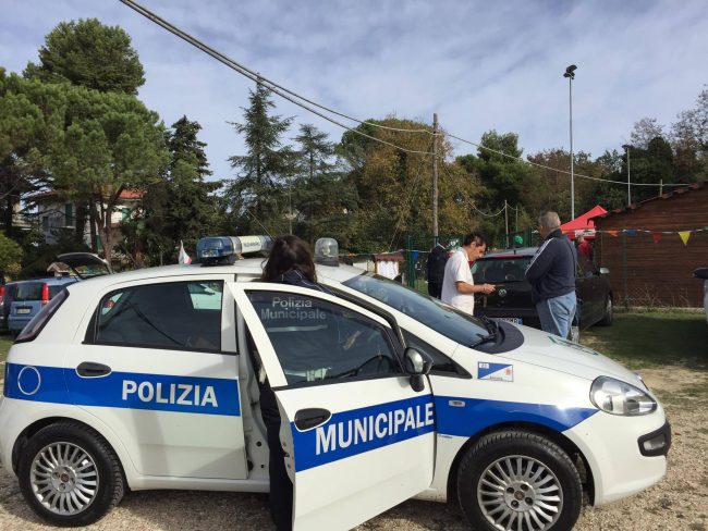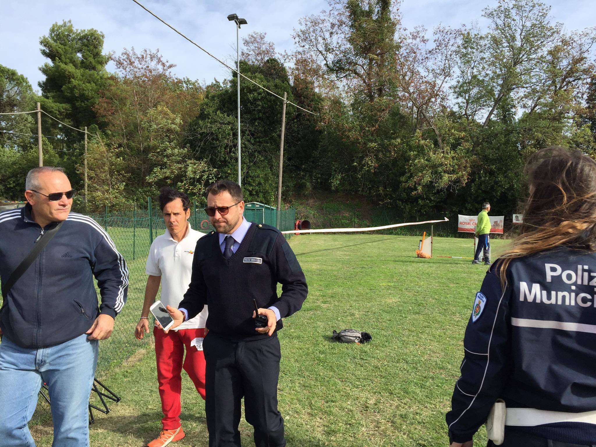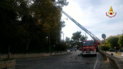 L’intervento della Polizia locale di Ancona a Posatora per il vento che ha indebolita una vecchia palo Telecom nelle vicinanze del campo di Anconagility