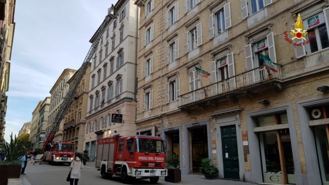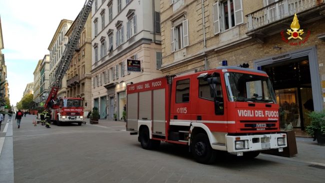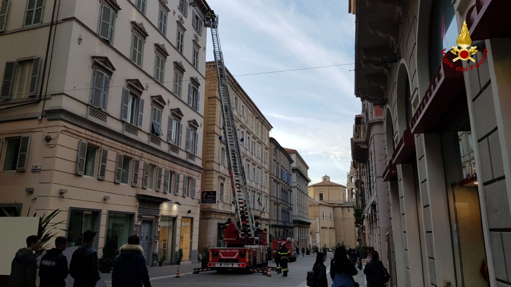 ANCONA – I vigili del fuoco sono intervenuti nel pomeriggio lungo l'isola pedonale con l'autoscala