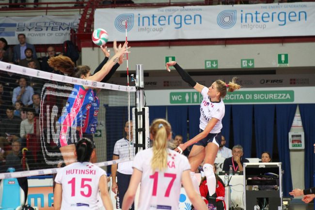 Egonu non sbaglia (19-16), Gamba è preziosa in difesa e consente a Mitchem di riportare Filottrano a -1 (19-18). Skorupa sceglie le mani sicure di Henright per allungare ancora (21-18) ed è proprio la portoricana (migliore giocatrice del match) a mettere il sigillo finale. “Sono contento della prestazione, perché abbiamo alzato il livello rispetto alla settimana scorsa – commenta Alessandro Beltrami a fine incontro -. Novara non è entrata subito nel ritmo della partita e nel primo set siamo stati bravi ad approfittarne, giocando abbastanza bene con i fondamentali di attacco e battuta. Non siamo ancora in grado di uscire da alcune situazioni, stiamo facendo esperienza, ma stiamo anche crescendo. L’A1 ti obbliga ad imparare in fretta. In partite in cui non abbiamo nulla da perdere dobbiamo rischiare ancora di più”. “Siamo state brave nel primo set ad approfittare dei loro errori, giocando pulite ed ordinate – aggiunge a caldo Francesca Bosio -. Loro poi sono cresciute, specie in battuta, a noi è mancato in alcuni momenti un po’ di coraggio ed è quello su cui stiamo lavorando. Tornare in questo palasport dove ho debuttato in A1 è stato emozionante”.