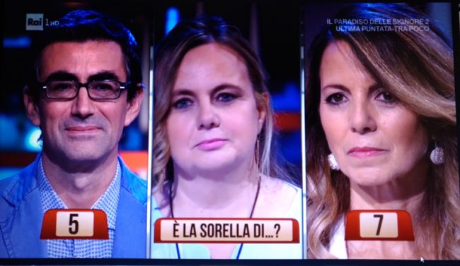 Nella puntata di ieri sera ha conquistato il pubblico dei ‘Soliti Ignoti – Il ritorno’ per la simpatia ed il sorriso Donatella Raponi, 54 anni, di Loreto. Nel quiz di Rai Uno condotto da Amadeus, la lauretana che gestisce un pastificio a Villa Musone, era l’ignoto numero 7. Fitness-addicted e con un trascorso da vigile urbano, la dinamica 54enne ha tratto in inganno due volte la concorrente che tentava la sorte. Con la frase sibillina: “si fa anche con le macchine ma a mano viene meglio” ha lasciato intendere che ricamava abiti sacerdotali mentre in realtà il riferimento era alla pasta fatta in casa. La seconda trappola invece l’ha tesa sul terreno del gioco finale ‘indovina il parente’ con l’aiuto di sua sorella Lucia, occhi azzurri lei, sguardo castano Donatella. Nel caleidoscopio di colori, sotto i riflettori del Teatro delle Vittorie di Roma la concorrente ha preso un abbaglio e, purtroppo, ha perso l’intero montepremi di 60mila euro.