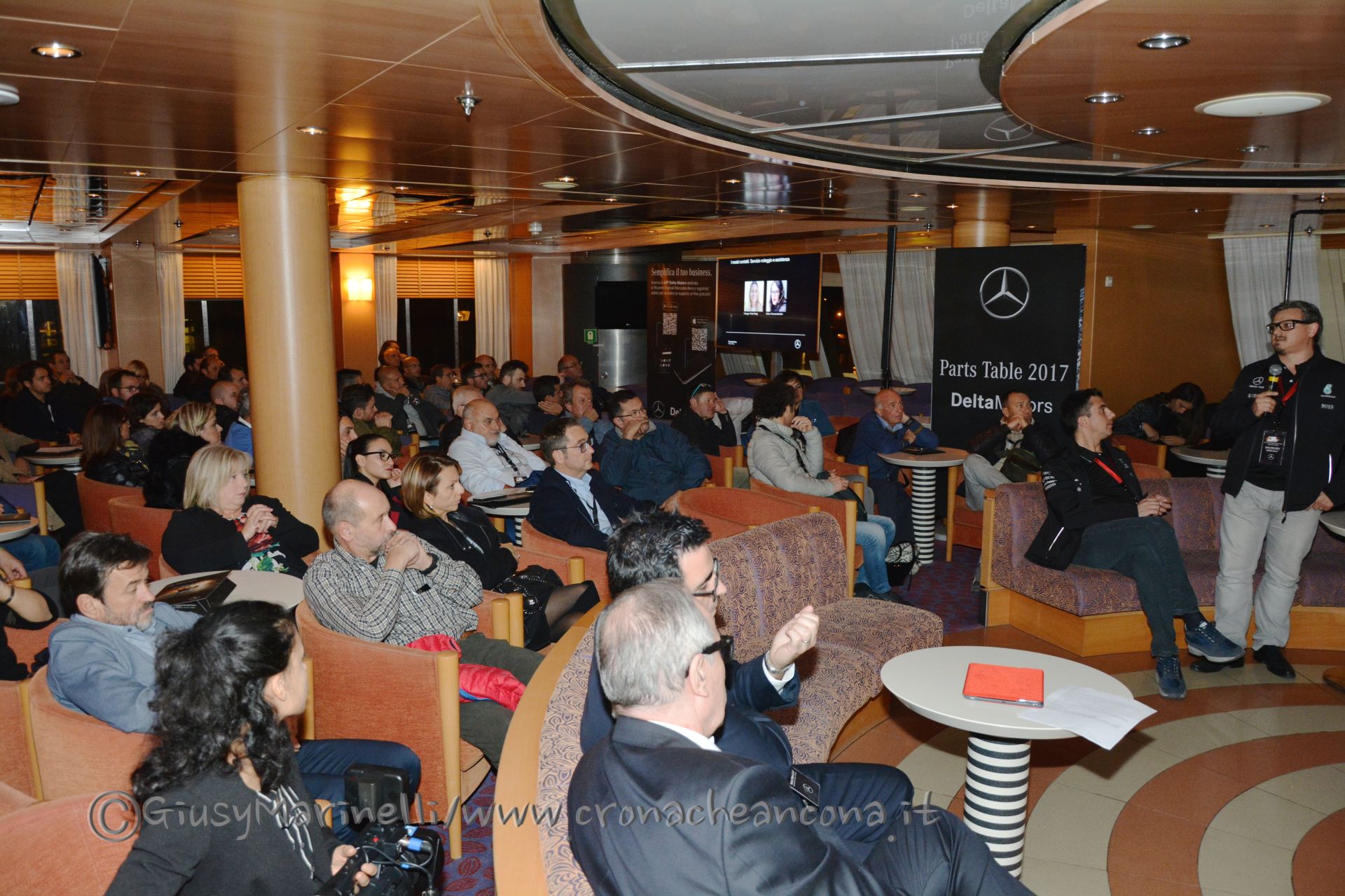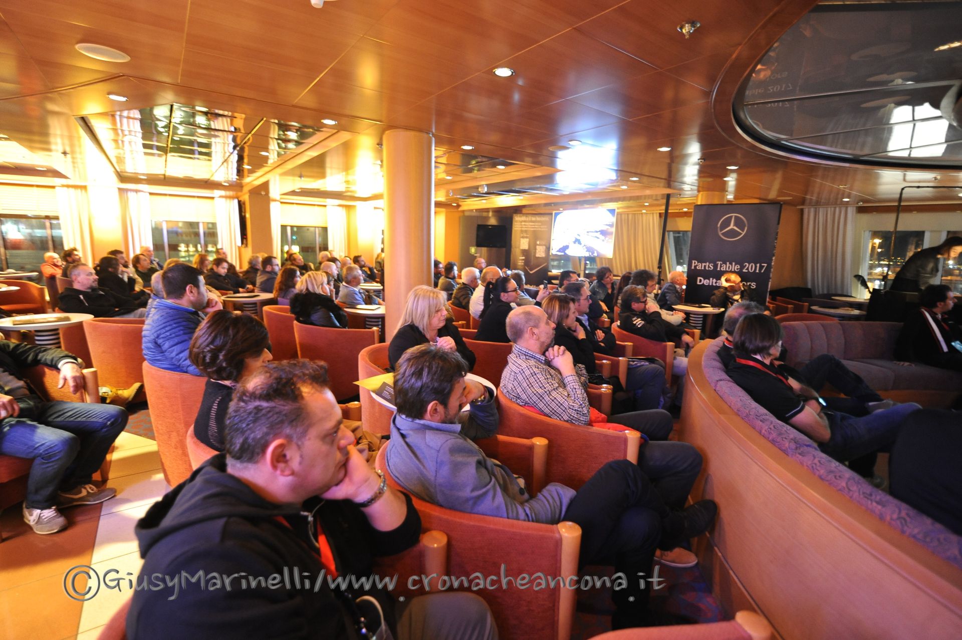 Accorciare le distanze con il cliente e fare di lui un fan dei prodotti e dei servizi Mercedes-Benz. Con questo obiettivo è nata la serata Delta Motors Parts Table a bordo della Superfast, ieri (7 novembre) ad Ancona. Una location particolare, il traghetto che deve il nome alla velocità di navigazione verso la Grecia, operato dall’agenzia marittima Fratelli Morandi di Ancona, per una serata nuova nel suo genere. Oltre 400 persone a bordo tra la squadra Mercedes-Benz Italia e Delta Motors di Ancona e Montecosaro e gli addetti alle officine di settore.