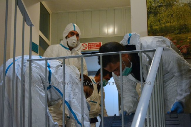 Gli specialisti del Ris a casa di Renata Rapposelli in via della Pescheria ad Ancona per il secondo giorno di sopralluoghi