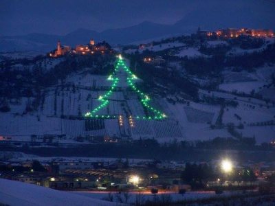 Conto alla rovescia per la cerimonia di accensione dell’Albero luminoso di Castelbellino, in programma domenica prossima, 26 novembre, nel centro abitato di Stazione. Torna a risplendere nella valle dell’Esino il tanto atteso abete verde del Natale, il più grande delle Marche, realizzato con numeri da record: 73 neon perimetrali, un dislivello di quota dalla punta al fondovalle di 134 metri, lunghezza lungo il versante di 434 metri, una superficie di 21360 metri quadri e 7000 metri di cavi. Il risultato, una magia per tutta la comunità e un addobbo festivo per la collina sovrastata dal borgo di Castelbellino.