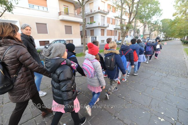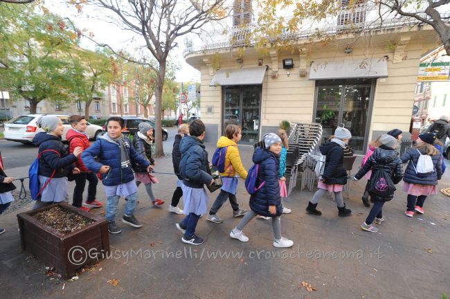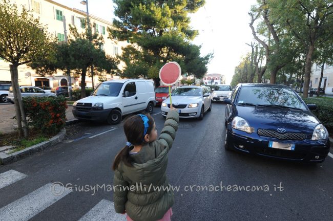 Auto parcheggiate sulle strisce pedonali o sul marciapiede, ferme in doppia fila o in sosta sui posti riservati ai disabili. Non sfugge nulla ai vigili urbani in erba delle scuole aderenti al progetto “Io decoro Ancona” e “Pedibus” del Comune di Ancona. Oggi è toccato cimentarsi sul campo agli alunni di una classe III della scuola primaria De Amicis di Ancona munirsi di taccuino e penna e multare gli autisti autisti indisciplinati della città. Multe morali lasciate dai bambini per far capire ai grandi quanto le cattive abitudini per strada possano arrecare danno agli altri quando non essere addirittura pericolose. Una lotta di civiltà condotta con garbo e determinazione per rendere i più piccoli consapevoli di cosa è giusto e cosa è sbagliato per diventare cittadini responsabili e per educare o ri-educare, attraverso i più piccoli, la società. Ma il progetto “Pedibus” è anche uno strumento attivo per ridurre il traffico, spesso proprio davanti alla scuole, nei momenti di inizio e fine delle lezioni, di conoscenza del proprio quartiere, di diffusione di corretti stili di vita, invitando al movimento ed allo stare insieme.
