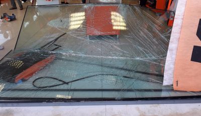 La vetrina in frantumi da Tavolini Moto