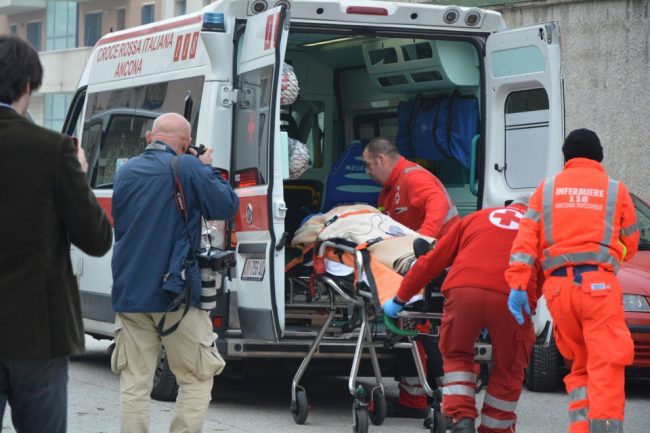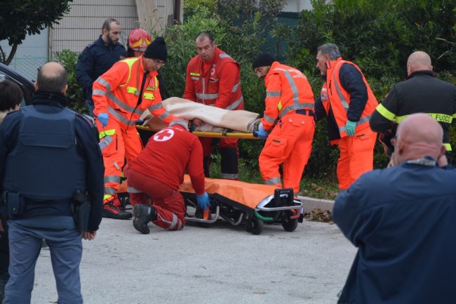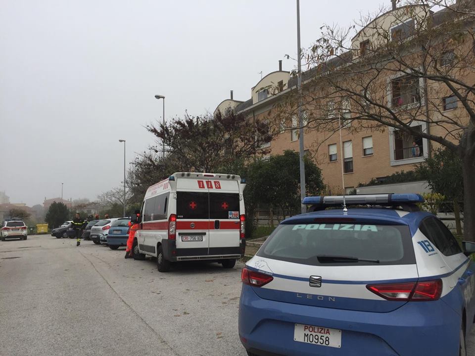 Si barrica in casa, chiude fuori la moglie e la figlia piccola e si lancia nel vuoto dal secondo piano della sua abitazione. Per ore ha minacciato il gesto folle fino a quando, attorno alle 13.45, l’uomo ha messo in atto il suo proposito davanti agli occhi dei soccorritori. Il dramma in via Matteo Ricci a Collemarino, dove polizia, vigili del fuoco, personale della Croce Rossa di Ancona e del 118 sono accorsi nella tarda mattinata per cercare di calmare l’uomo e convincerlo a rientrare in casa. Alla vista dei soccorritori, l’uomo ha continuato a gridare il suo proposito di lanciarsi sulla strada dal secondo piano dell’abitazione. L’uomo di origine romene, sulla trentina, non ha saputo dare una spiegazione alla mattinata di paura. Ai poliziotti che hanno tentato di instaurare un dialogo per farlo ragionare, lo straniero ha solo riferito frasi sconnesse. Ad assistere impotenti all’intera scena del crollo nervoso dell’uomo, sua moglie e la figlioletta di quattro mesi, che hanno trovato rifugio in casa dei vicini. In un crescendo di minacce di suicidio e urla, l’uomo ha afferrato una bottiglia, l’ha spaccata contro l’inferriata del balcone, per poi rientrare in casa, il collo rotto della bottiglia brandito come arma, facendo temere il peggio. Attorno alle 13.30 l’uomo ha poi appiccato un incendio sul balcone di casa. Rischiava di rimanere intossicato dai fumi e per questo la polizia è entrata in azione cercando di raggiungere l’uomo attraverso la cucina e il fumo denso, ma il 30enne a questo punto, probabilmente per sfuggire al rogo, si è lanciato dal secondo piano. L’uomo è stato subito soccorso dal personale sanitario presente. Per lui è scattata la corsa in ospedale a Torrette, dove è ricoverato con tre costole rotte, ma non è in pericolo di vita.