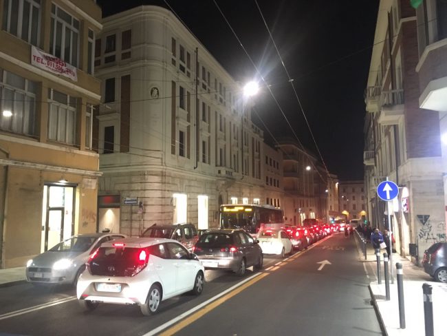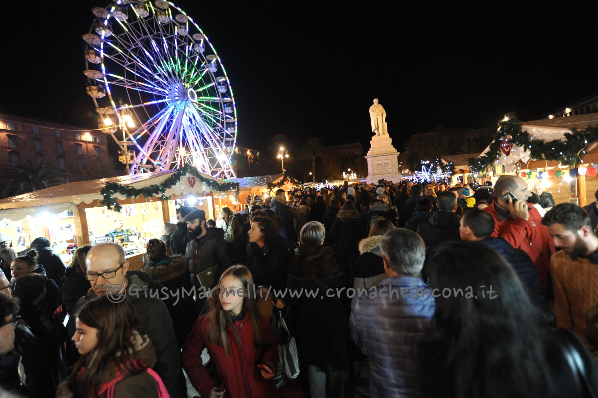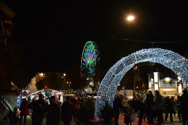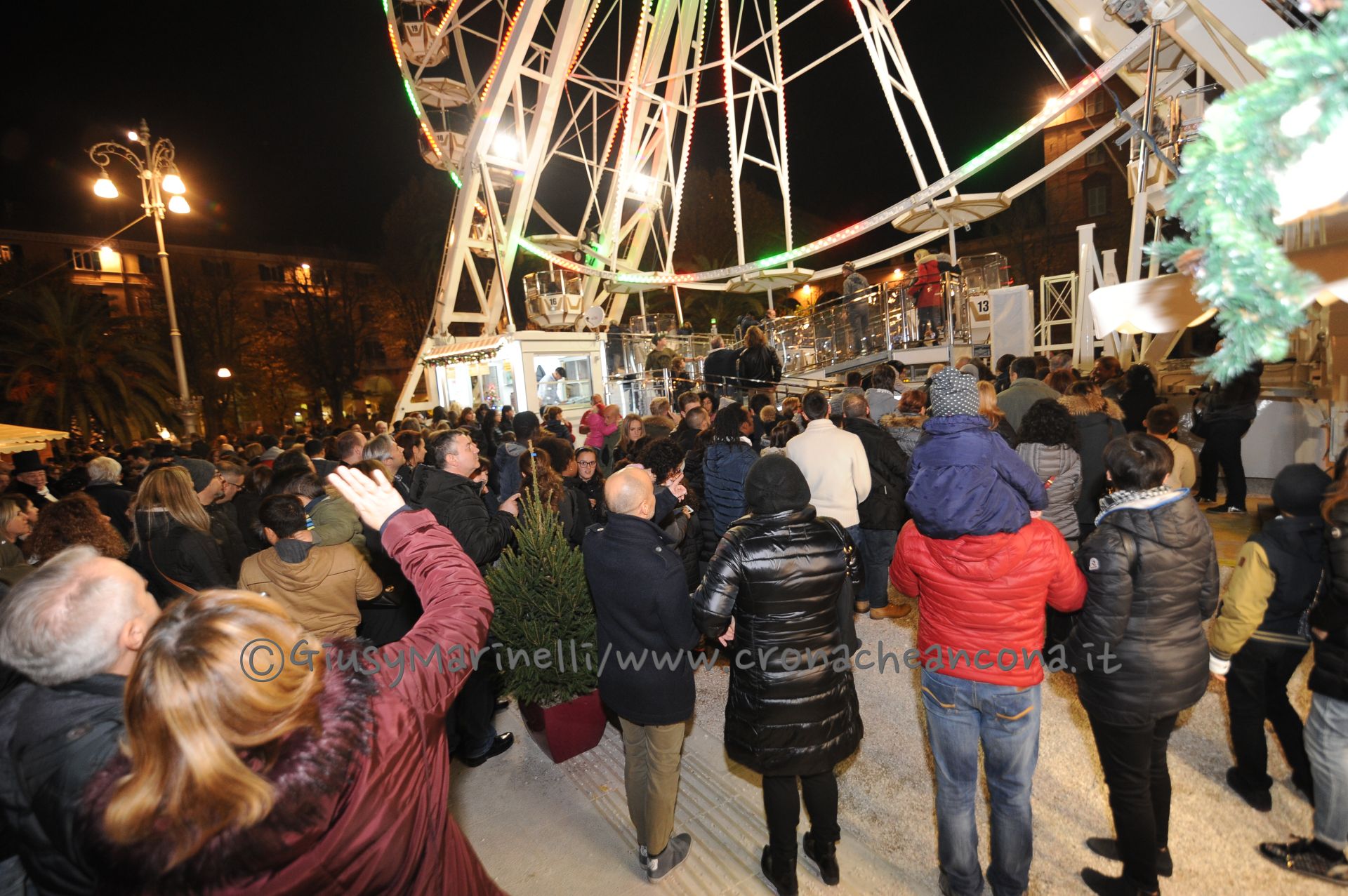 Tranne per chi ha cercato di raggiungere il centro in auto, nonostante le raccomandazioni ad utilizzare navette gratuite e trenini. L’inaugurazione degli eventi natalizi in concomitanza con il Mercatino dell’antiquariato e Chocomarche ha creato un mix micidiale per il traffico, congestionato. Bloccato l’asse nord sud in entrata all’altezza della galleria subito subito dopo motel ed autolavaggio. In tilt via Bocconi, la rotatoria di piazzale Italia, la galleria del Risorgimento. Auto in coda anche in via Montebello, via San Martino, corso Stamira e via XXIX settembre. Chi è riuscito a trovare posto si affretta per raggiungere piazza Roma, raggiungibile velocemente e piedi solo non passando per corso Garibaldi stracolmo. Così anche piazza Cavour dove in contemporanea all’albero si è accesa ufficialmente la ruota panoramica, che gira come le grandi gonne delle dame dell’Accademia di danze ottocentesche che si è esibita proprio sotto la maestosa giostra natalizia – centinaia le persone in coda per i biglietti (5 euro) – e si è aperto il Christmas village, con i suoi prodotti d’artigianato.
