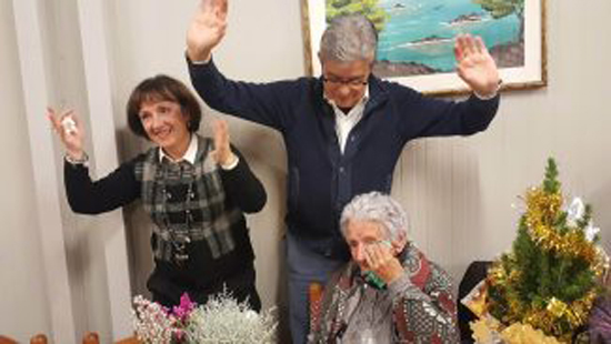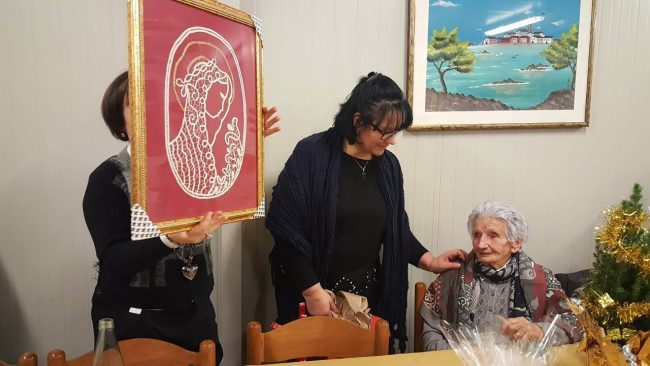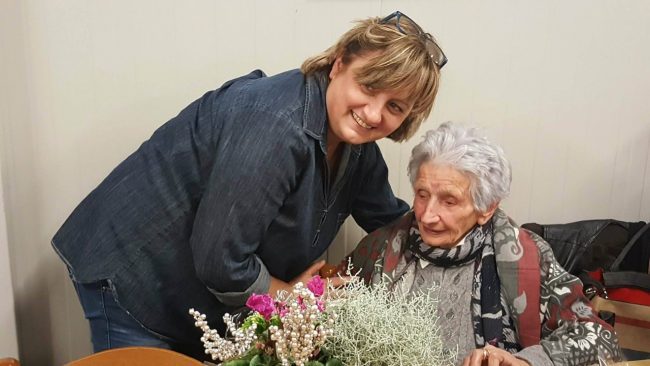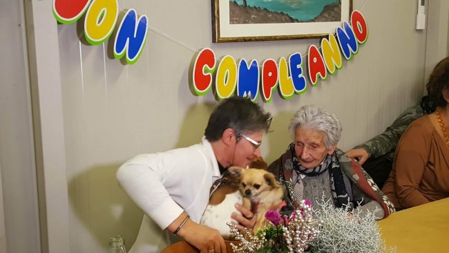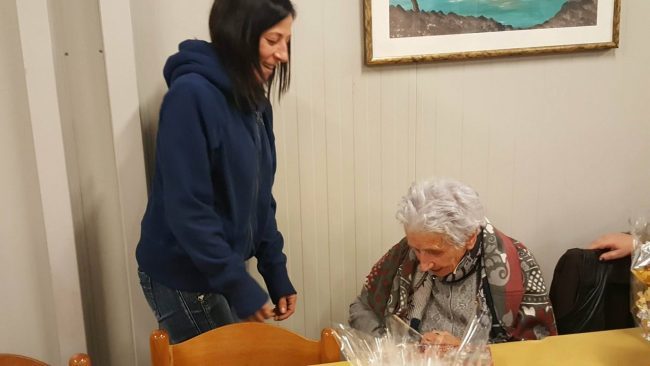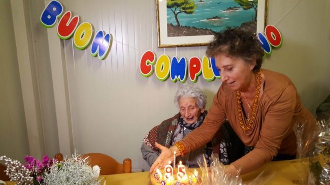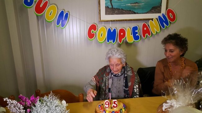 Per il giorno del suo 95esimo compleanno Peppina ha ricevuto un dono inaspettato: un quadro di Papa Francesco firmato dallo stesso pontefice che la invita a lasciare il container per tornare a vivere dalla figlia. Una sorpresa che ha fatto commuovere Giuseppa Fattori, la terremotata di San Martino di Fiastra che aspetta nel container che il Parlamento approvi la norma che le permetta di rientrare nella casa di legno ancora sotto sequestro perché abusiva. Oggi l’anziana ha spento le candeline insieme ai familiari e a ben 70 persone arrivate da diverse parti d’Italia per un pranzo a sorpresa organizzato nel ristorante dei fratelli Polverini a Fiastra. A darle la torta (un dolce alla ricotta e ai mirtilli fatto in Toscana), Filippo Fontana, capogruppo dell’associazione Ridere per ricominciare, che per ben nove volte è venuto a trovare l’anziana a San Martino di Fiastra. «Ho conosciuto la sua storia in televisione e mi sono affezionato a lei, visto che chi dovrebbe fare non fa e lei è costretta a stare nel container, abbiamo voluto regalarle questa festa – ha detto Fontana – torneremo per un’altra festa quando lei rientrerà nella casetta».