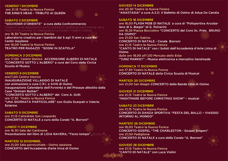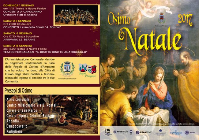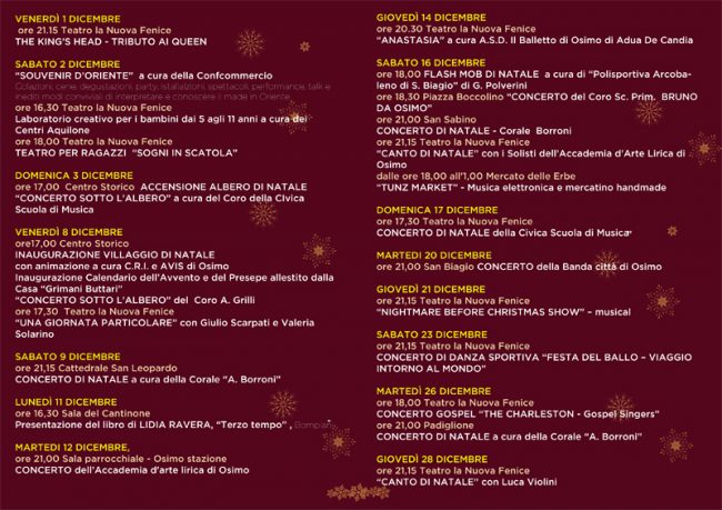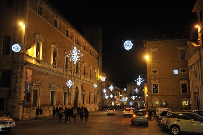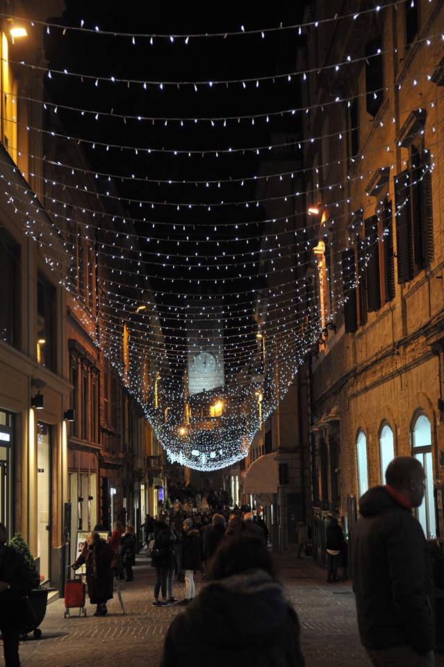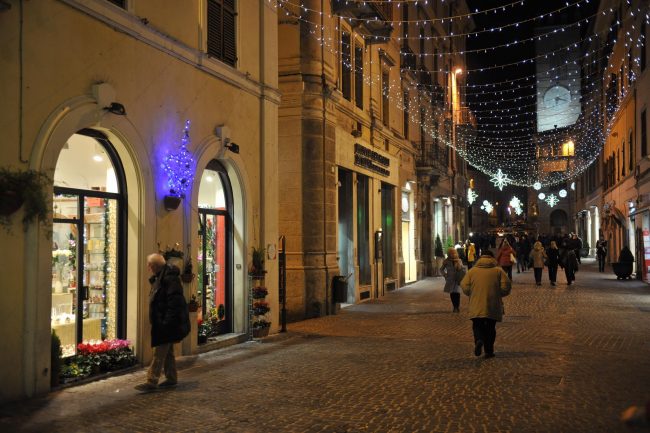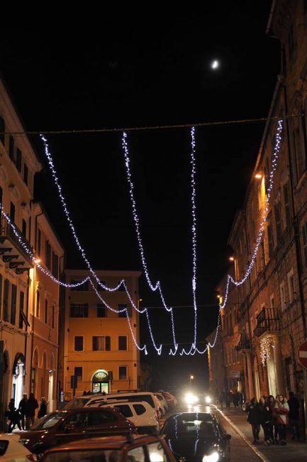 Si accede la magia del Natale anche ad Osimo, vestita a festa con le luminarie per le vie del centro storico. L’allestimento dell’abete di 16 metri, donato da Cortina d’Ampezzo, inizierà giovedì prossimo. L’inaugurazione dell’albero di Natale è invece anticipata quest’anno al 3 novembre, alle ore 17, con il concerto del coro della Civica scuola di musica di Osimo. L’8 novembre invece, il taglio del nastro per il villaggio di Babbo Natale sempre in piazza Boccolino. Nell’atrio comunale subito dopo sarà inaugurato anche il presepe allestito dalla Fondazione Grimani Buttari. Ricco, anche quest’anno il cartellone delle manifestazioni (leggi l’articolo).