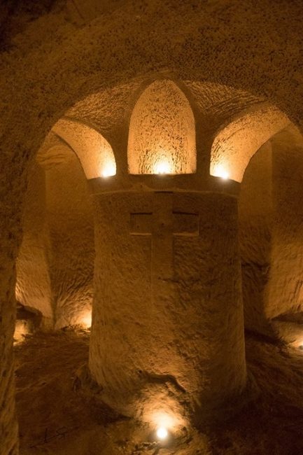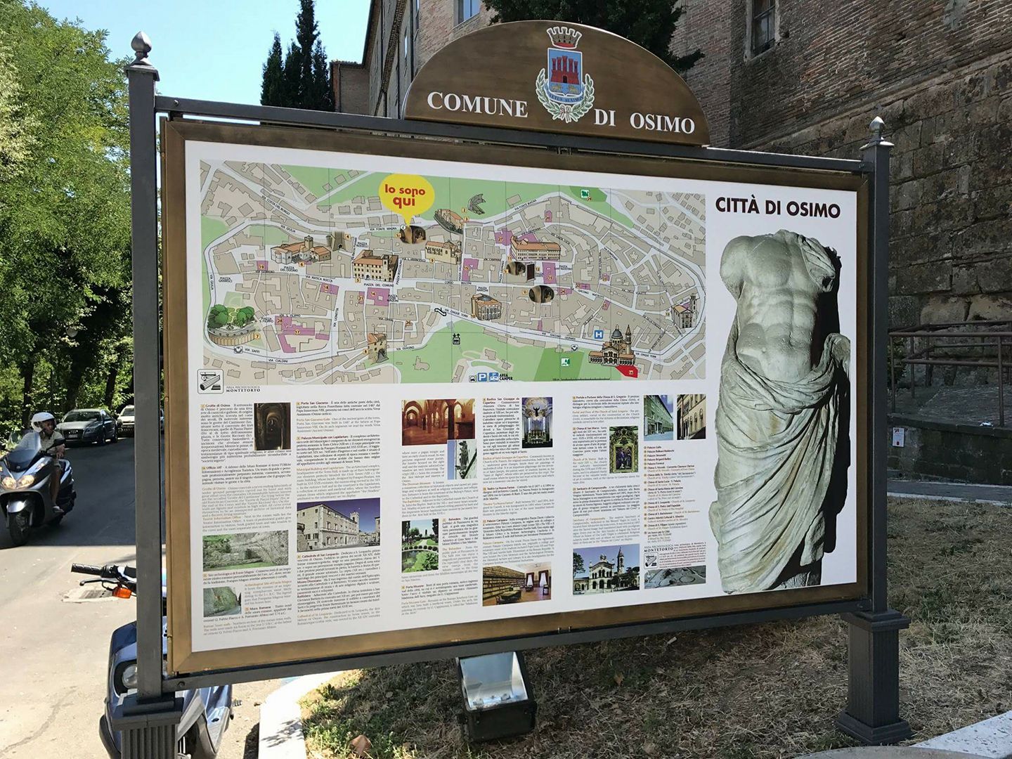 L’itinerario segreto della città, scavato nel tufo, nel complesso si articola per stretti cunicoli, alcuni risalenti al II millennio a.C.. I per circa 5 km con 120-150 grotte, per lo più sconosciute agli osimani, a livelli di profondità che variano dai 3-6 metri fino agli oltre 15 dal piano stradale. Tra un’area e l’altra il percorso è spesso interrotto da nicchie chiuse da muri e trasformate in cantine, o da altre riempiti di detriti di scarto per costruire i palazzi dentro le mura.