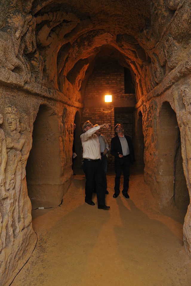 Oltre alle Grotte dei Cantinoni, ristrutturate e aperte al pubblico dal 2007, tra due anni entreranno quindi nel patrimonio del Comune anche quelle di Piazza Dante, percorso ipogeo ricco di simbologie templari e alchemiche, visitabili dal 2014 su concessione del Demanio e le stesse grotte di Palazzo Campana, oggi chiuse al pubblico. Ma se nel labirinto di Piazza Dante la temperatura costante di 13° con il suo alto tasso di umidità, favorisce la conservazione dei bassorilievi, pertanto lo stato conservativo dell’ipogeo risulta buono, nelle grotte di Palazzo Campana, le infiltrazioni d’acqua, le variazioni al microclima e soprattutto l’umidità stanno invece da anni contribuendo a sgretolare i bassorilievi scolpiti in alcuni tratti del reticolo sotterraneo. L’Istituto Campana lavora da anni per rendere visitabili le sue preziose grotte alla ricerca di modalità che le mettano in sicurezza. Lo studio dell’Università politecnica di Ancona, incaricata di analizzare la situazione, ha formulato una serie di ipotesi per preservare e valorizzare questo patrimonio artistico. “Sulla base di questa perizia tecnica si sono aperte varie possibilità e il Comune sta valutando insieme all’istituto Campana di anticipare l’apertura al pubblico delle grotte, magari per gruppi numerici limitati e naturalmente con modalità che non le danneggino” annuncia l’assessore Michela Glorio.