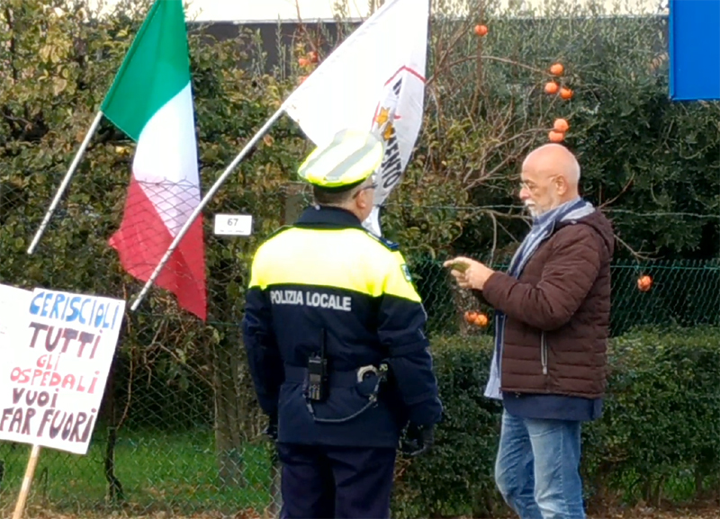 Il sindaco di Castelfidardo, Roberto Ascani, parla ai manifestanti